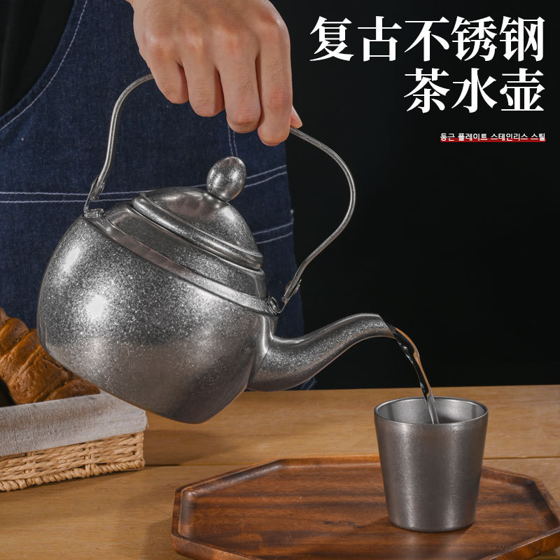 复古不锈钢茶水壶商用煮水烧水壶工业风咖啡手冲壶提手做旧泡茶壶