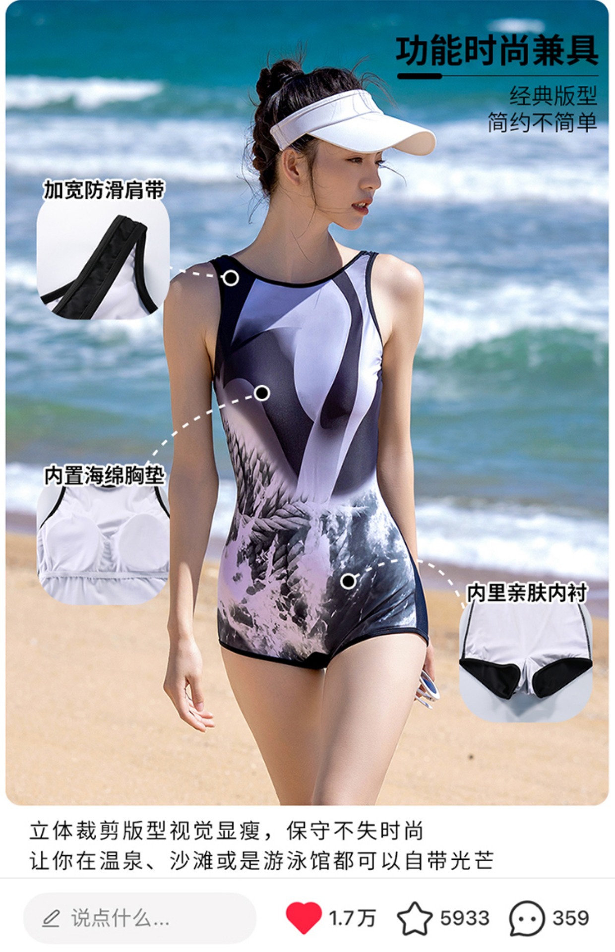 三奇保守水着女性ワンピース温泉水着韓国ins大サイズスポーツ平角隠し水着女性