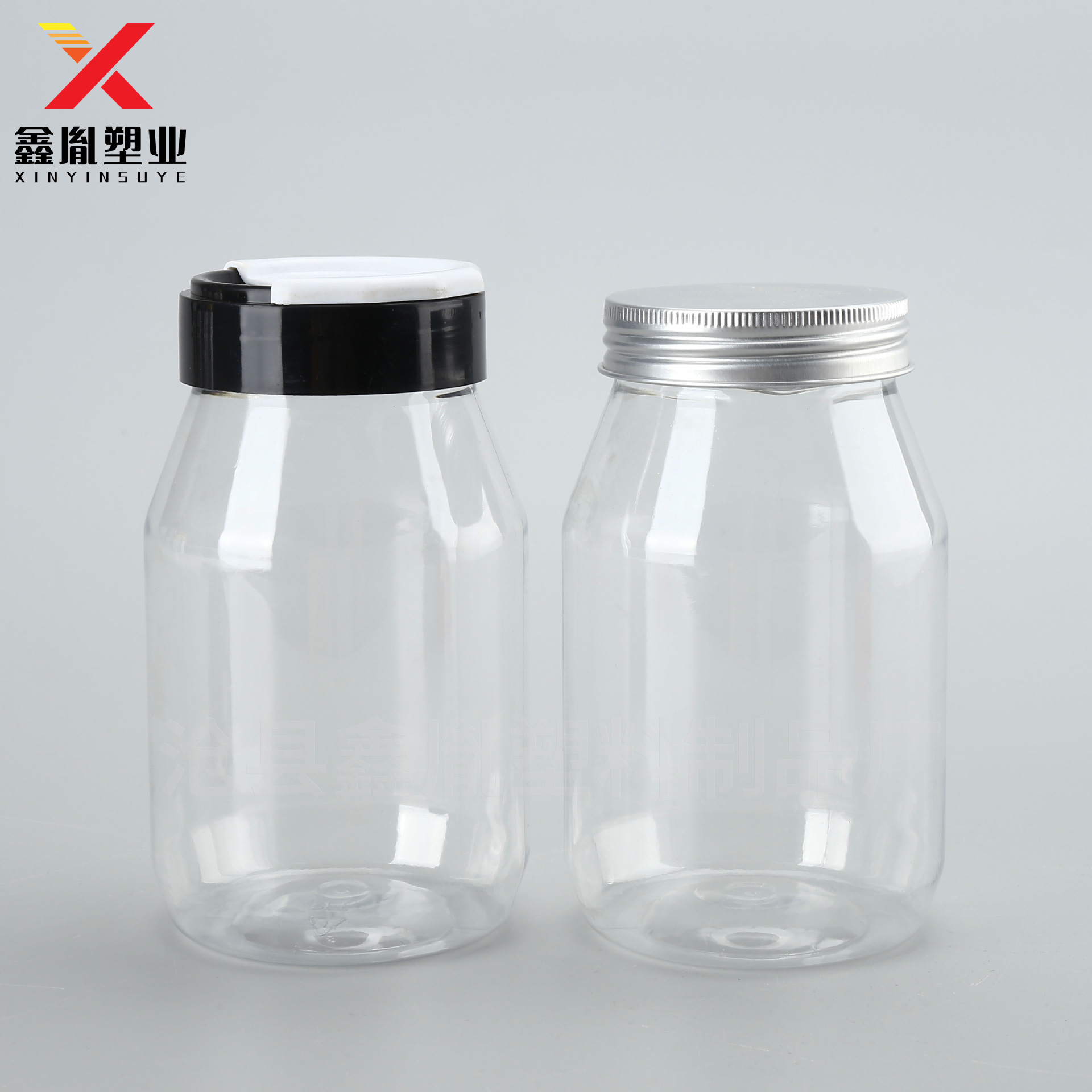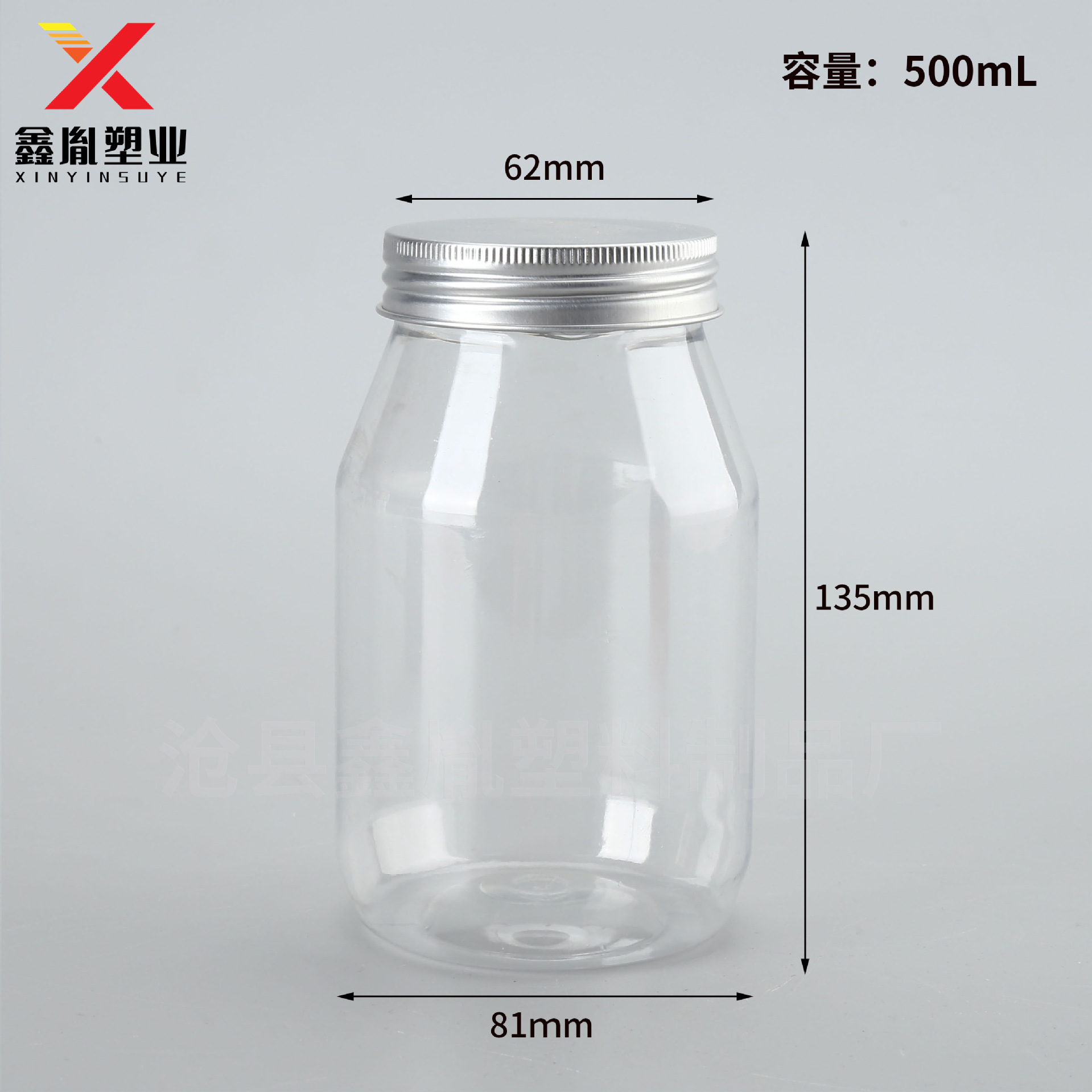 500mlプラスチックボトル花茶瓶アルミ蓋プラスチック缶円形透明ナッツ缶pet 500ミリリットルスナック缶