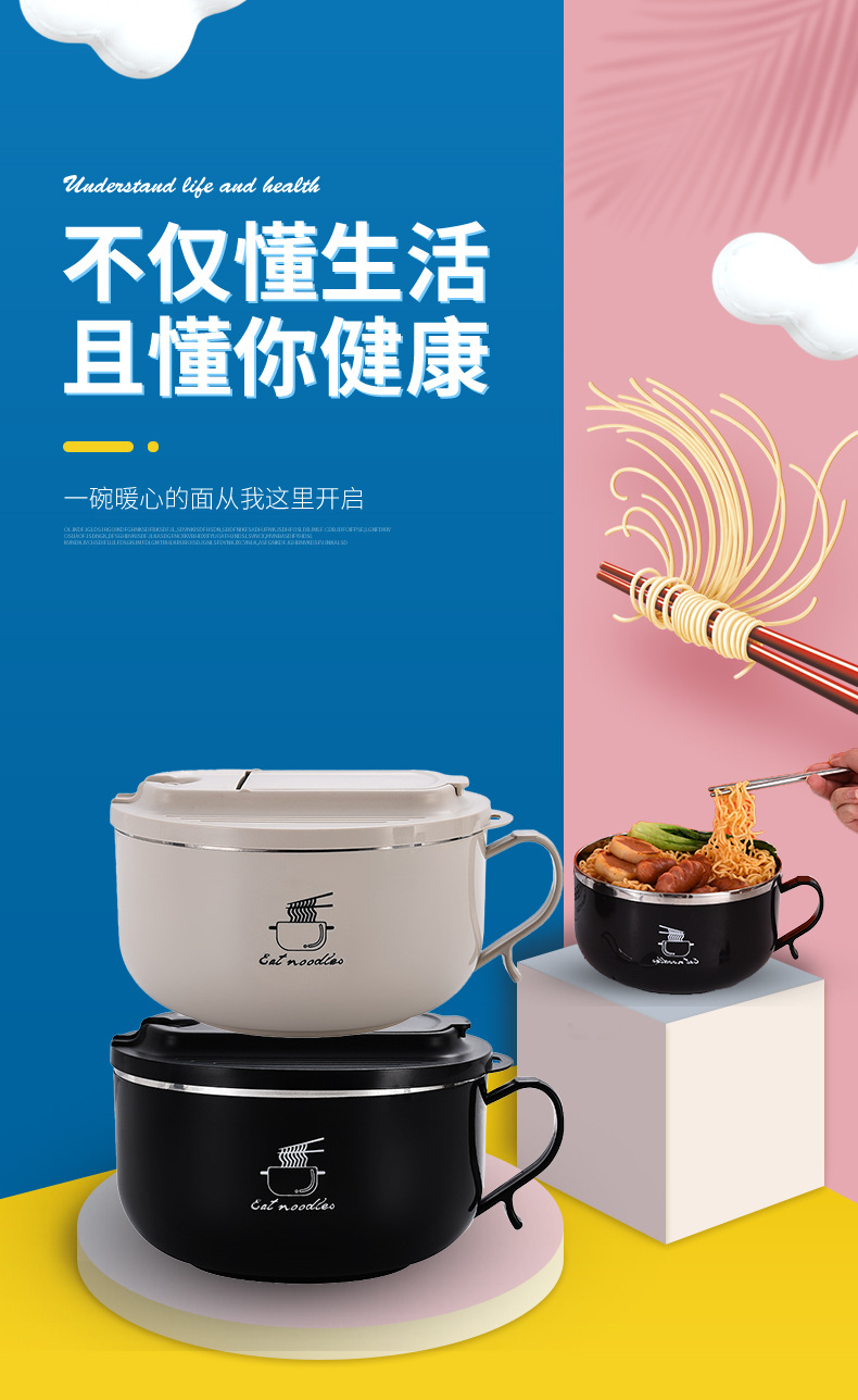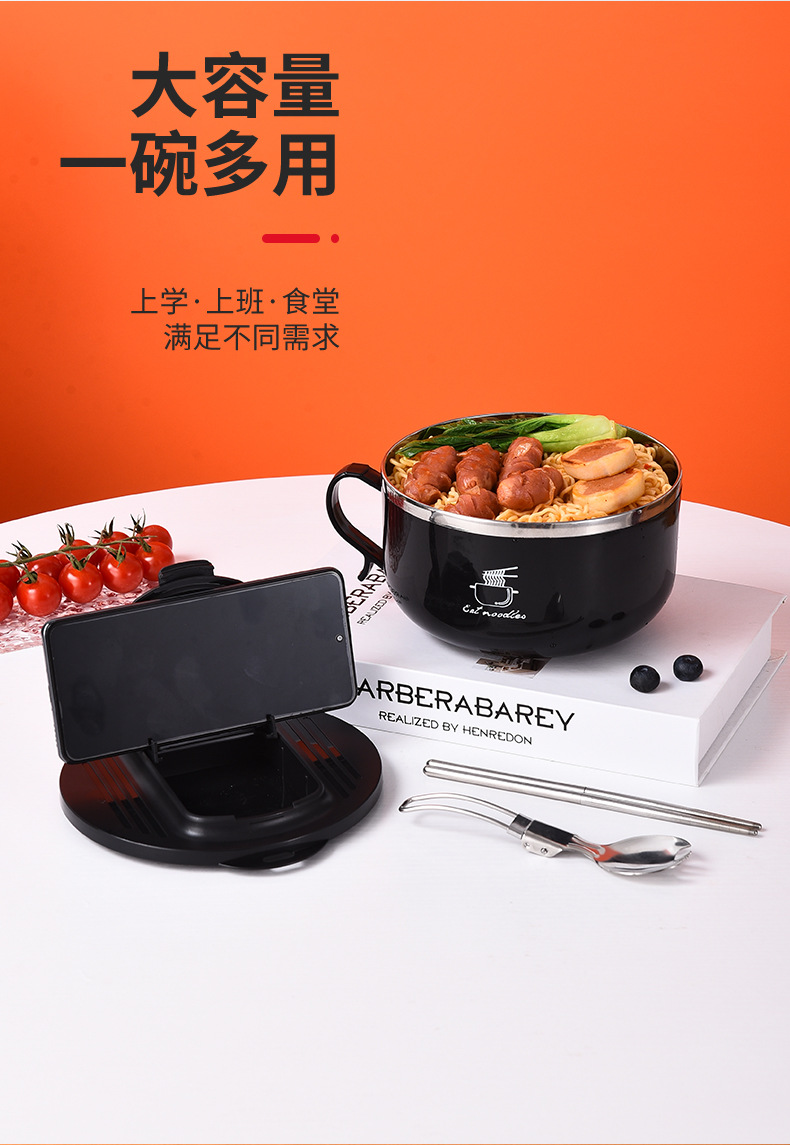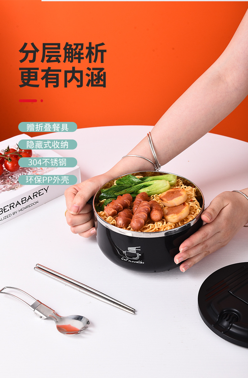 304不锈钢泡面碗带盖上班族学生大容量方便面碗宿舍泡面神器饭碗
