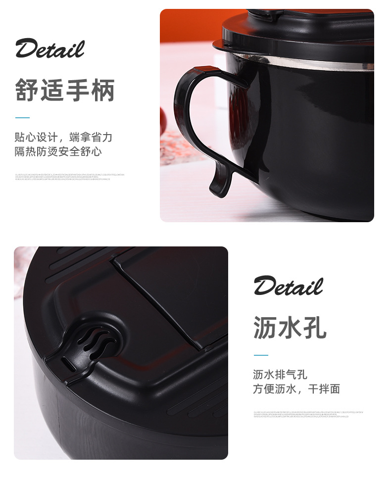 蓋付きステンレスインスタントラーメンボウル、水切り可能な学生寮ボウル、食堂食事ボウル、サラリーマンボウルと箸セット食器