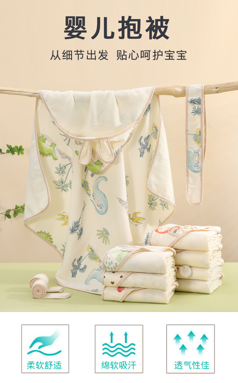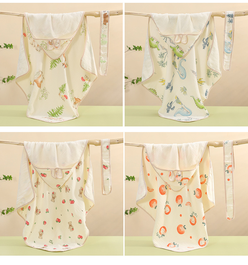 ベビーAクレープマント通気吸水綿フード付きガーゼ子供用マント着てロゴを作ることができます