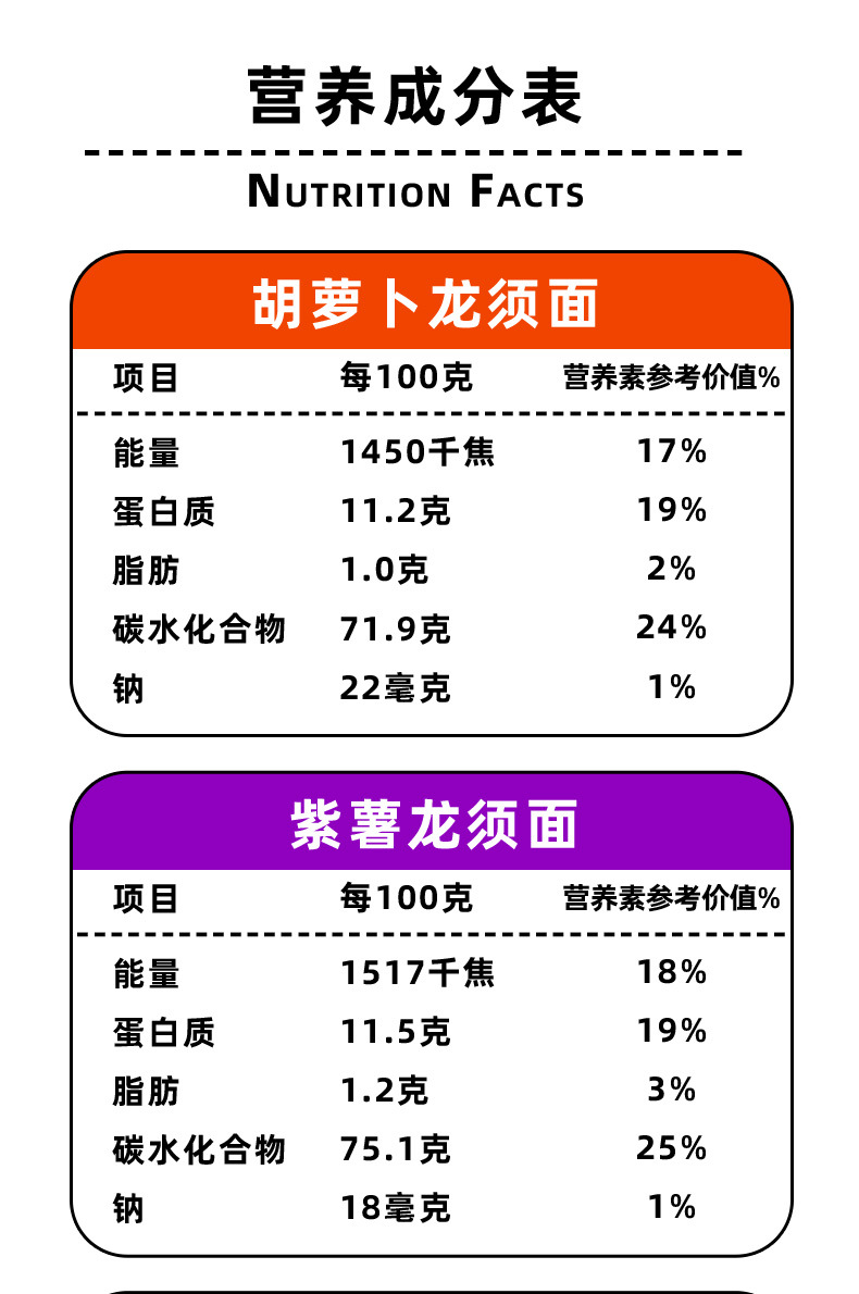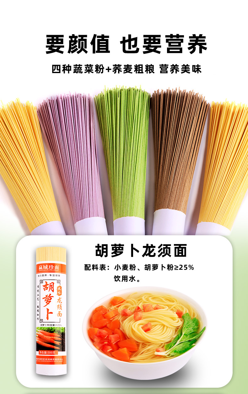 低脂肪野菜龍鬚麺、ほうれん草、かぼちゃ、紫芋、人参麺、五色朝食粗粒麺、卸売