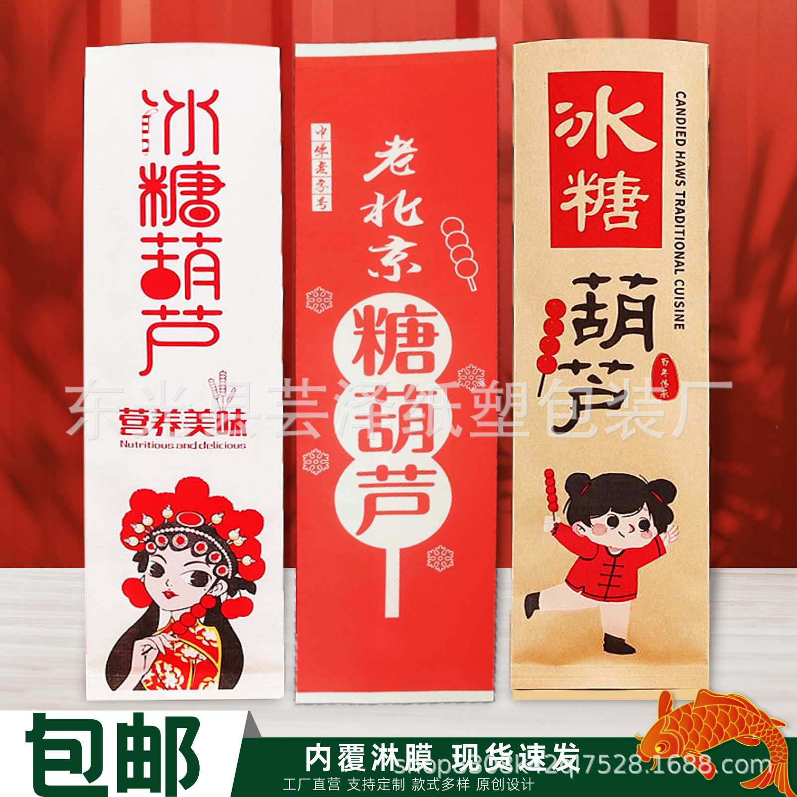 国潮氷糖瓢箪紙袋古い北京糖瓢箪包装袋使い捨てクラフト紙袋は膜を厚くして油を防ぐ