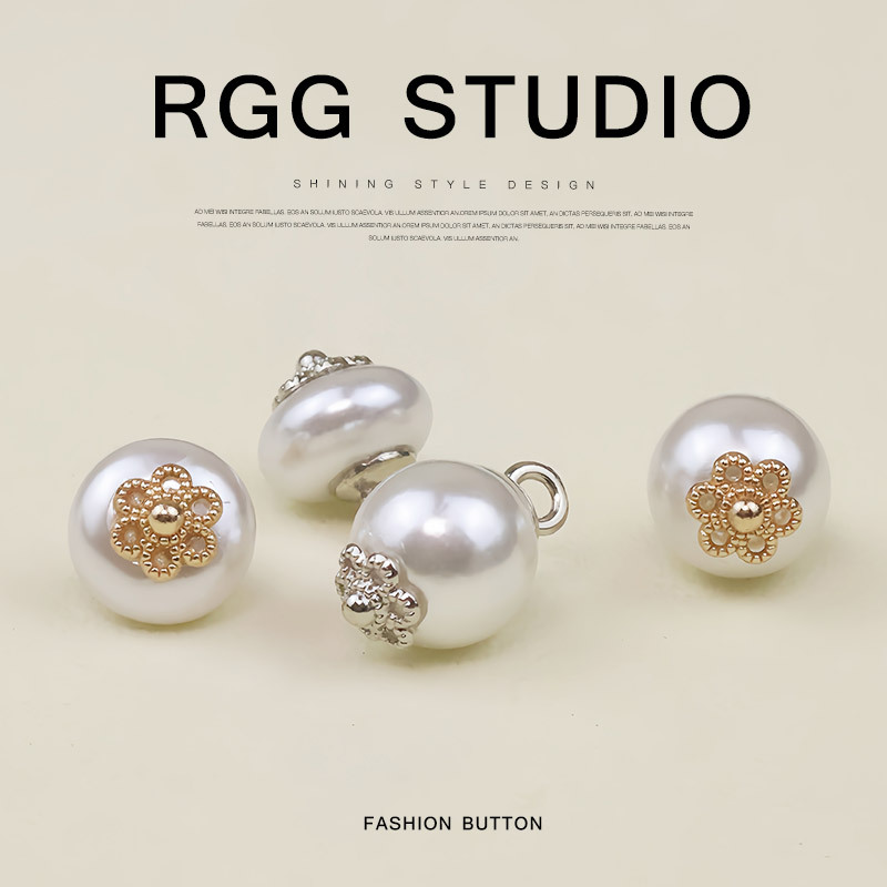 新しい中国のチャイナドレスの真珠のボタンの丸い平玉は金属の花をくっつけてボタンの女性の上着のシャツのセーターを掛けます。
