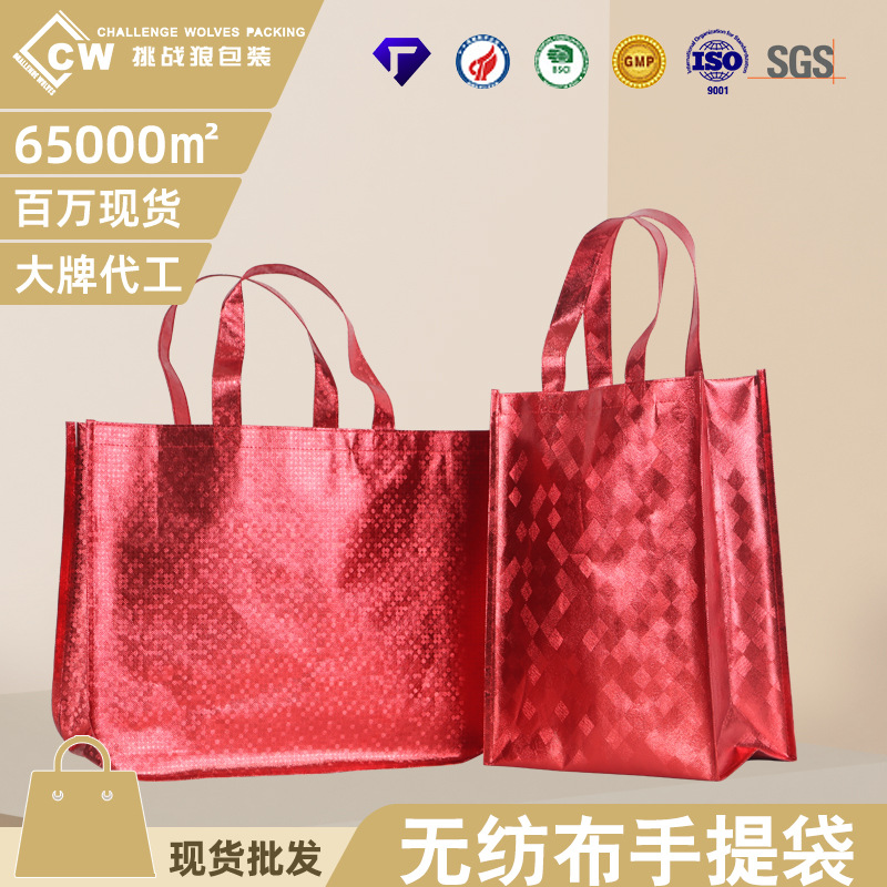 レーザー被膜レジ袋アルミメッキ車縫い不織布手提げ袋お祝い新年ギフトバッグは多色ロゴを印刷できます