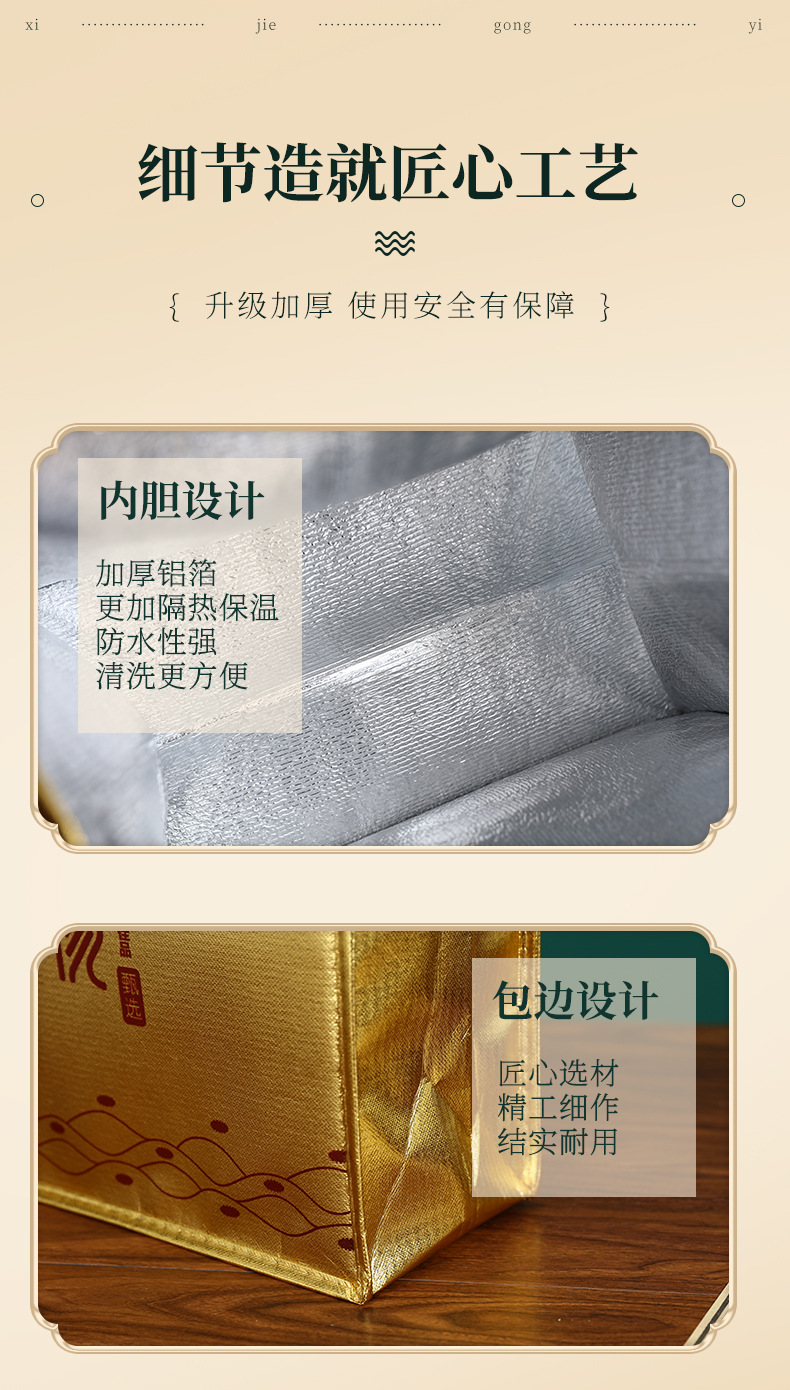 新春ギフト保温袋新年お土産不織布厚手ギフトバッグ食品手提げ保温袋オーダーメイド