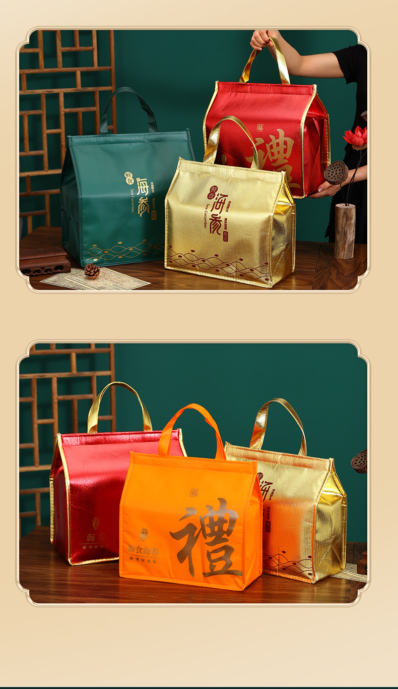 新年プレゼント保温袋牛肉丸プレゼント袋盆菜ナマコプレゼント袋海鮮ギフトバッグ水餃子包装袋