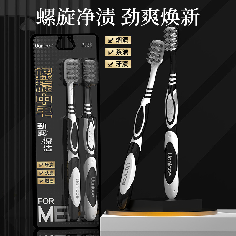 Uanicce高档祛渍牙刷硬毛牙刷成人家用强效清洁提亮牙齿男士专用