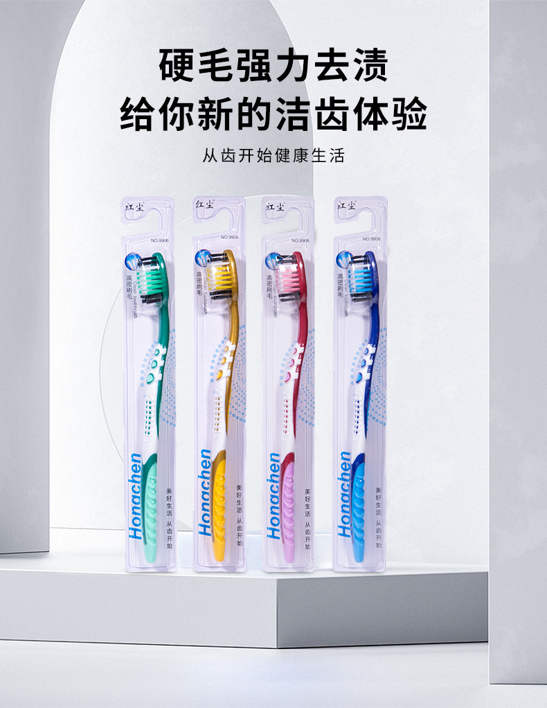 硬毛牙刷成人正品超硬耐用高端中硬毛家用去烟渍牙齿污垢清洁神器