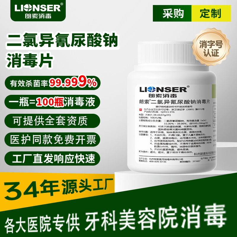 泳池消毒片二氯异氰尿酸钠批发医院同款杀菌消毒家用含氯消毒片