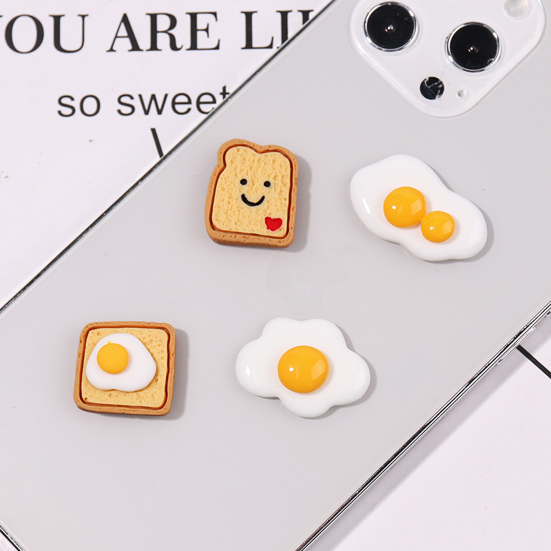 パン片卵トースト卵焼きクリームゴム携帯ケース樹脂アクセサリー小物diy材料手作り