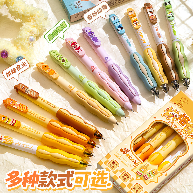 カバ熊四本入りアクリルステッカーペンかわいいバラ少女押しペン中性筆学生黒筆速乾