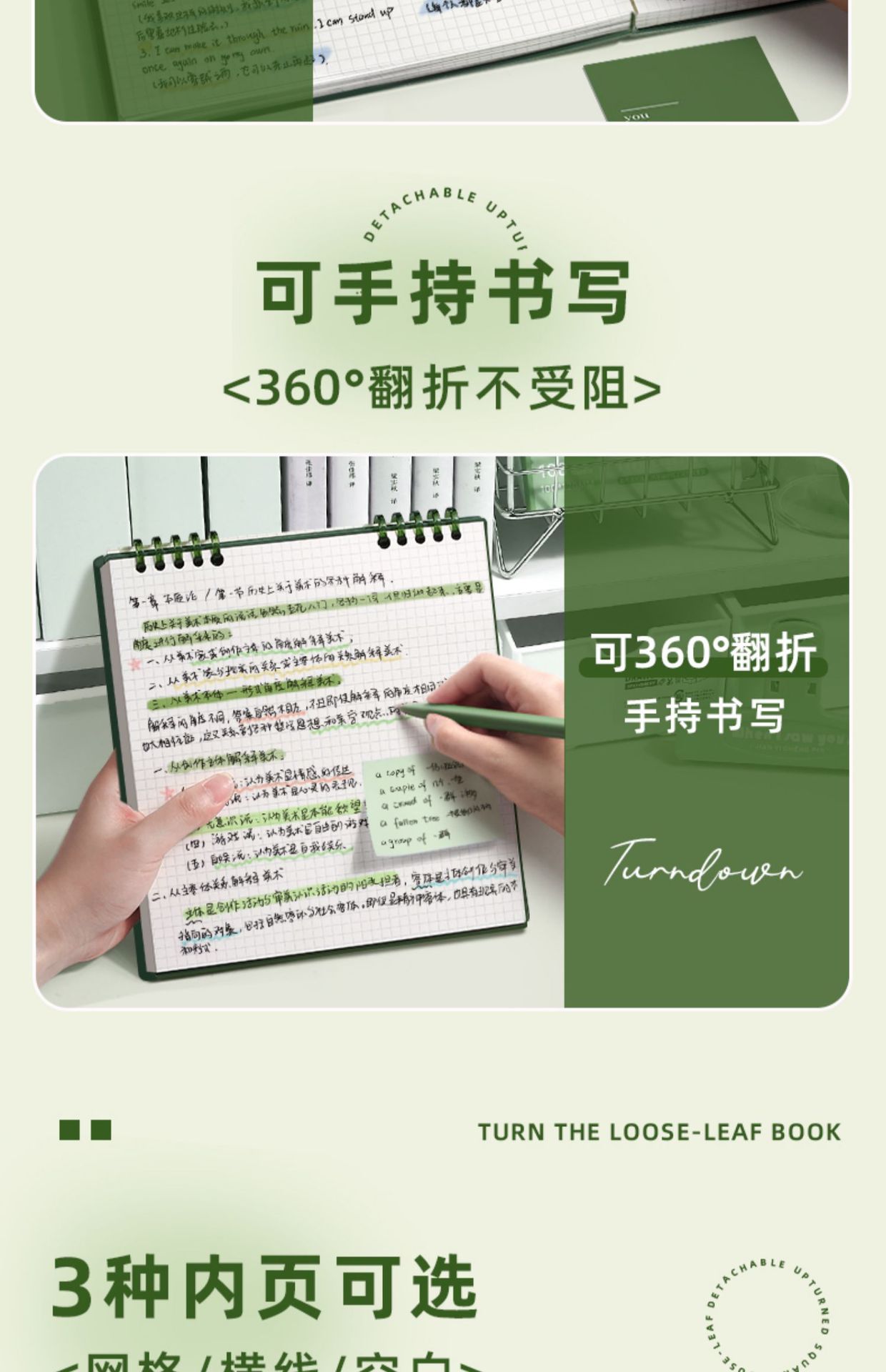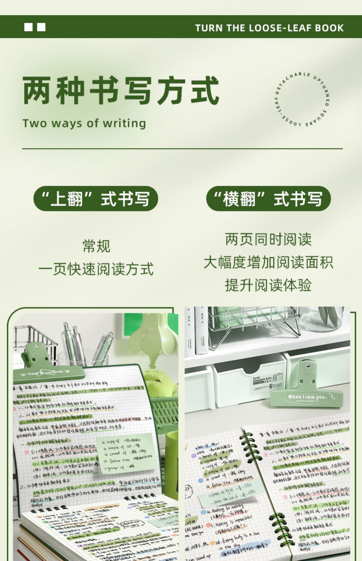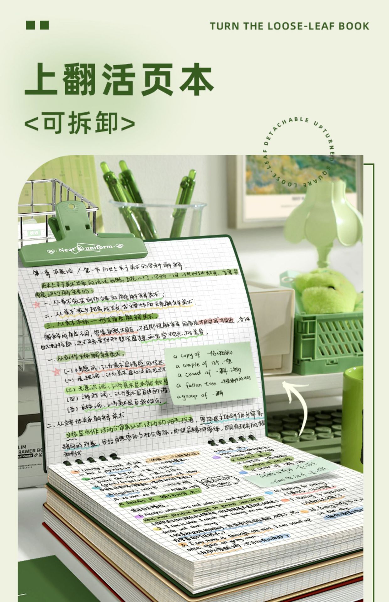 ルーズリーフのノートb 5の上でひっくり返して取り外し可能です。