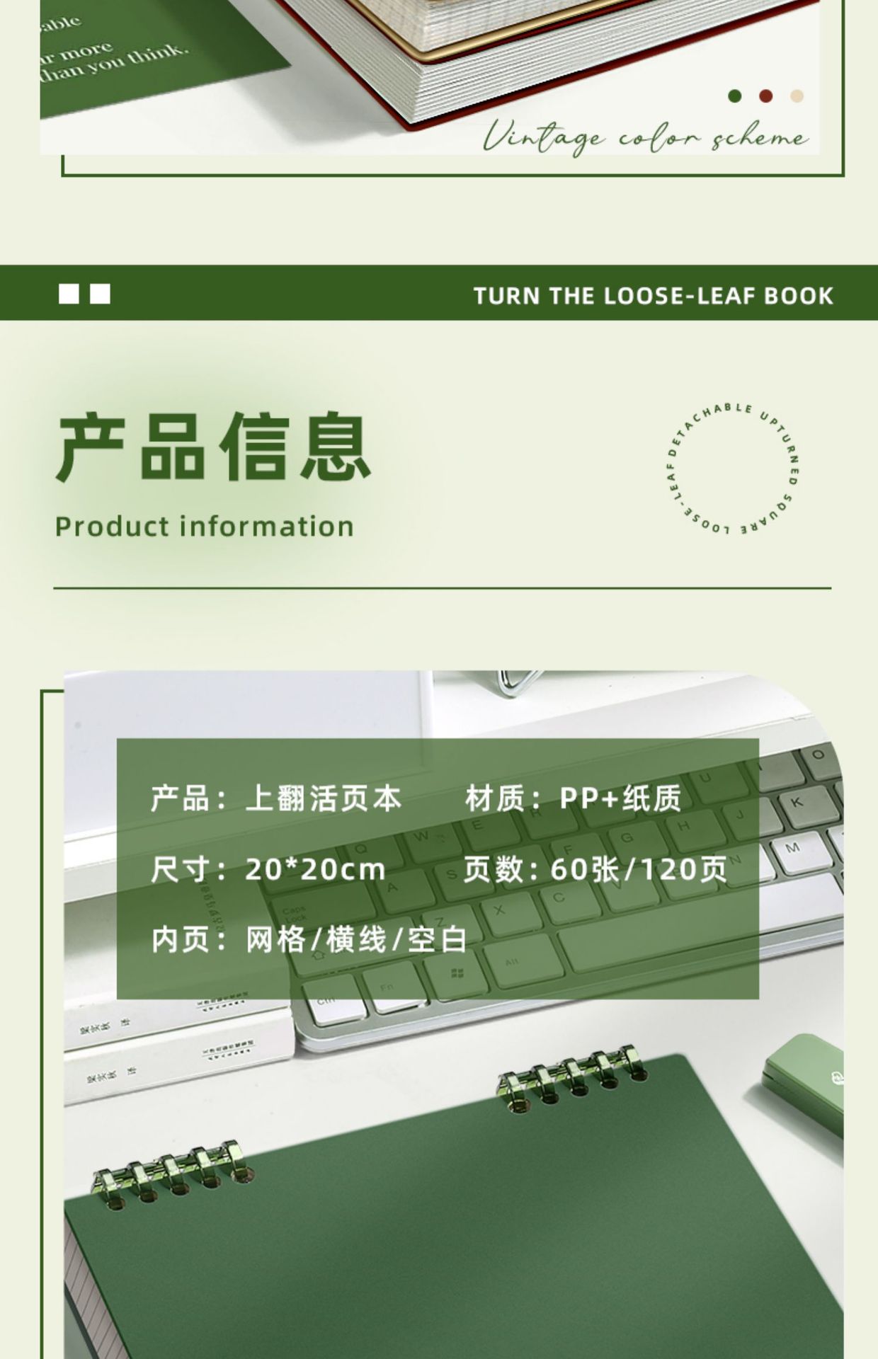 タイトル1 新しいノートブック、正方形のルーズリーフブック、高見えメモ帳、レトロな跳ね上げルーズリーフブック、英単語ブック