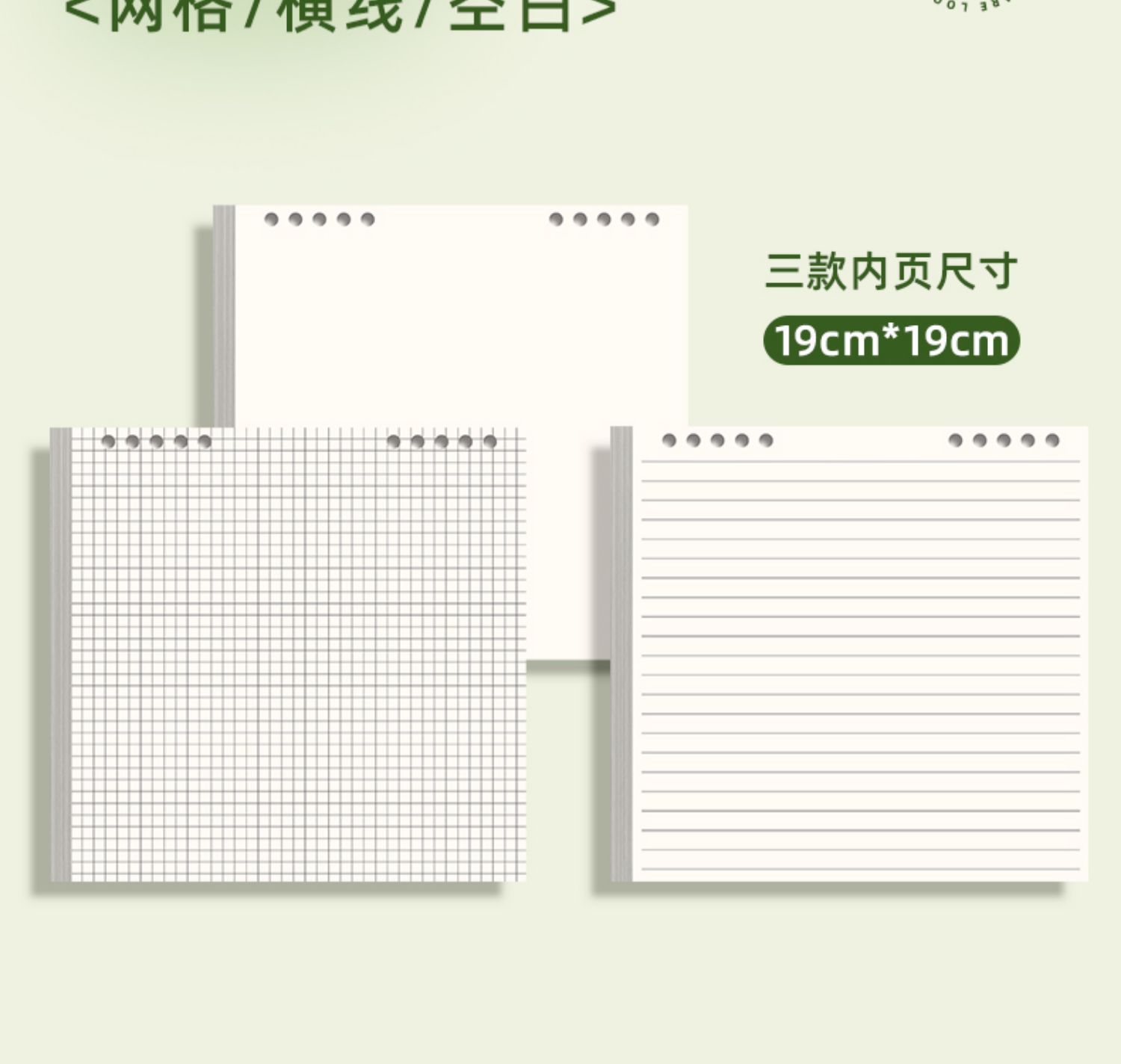 無地の正方形のルーズリーフノート、高品質な方眼ノート、取り外し可能な手帳日記帳
