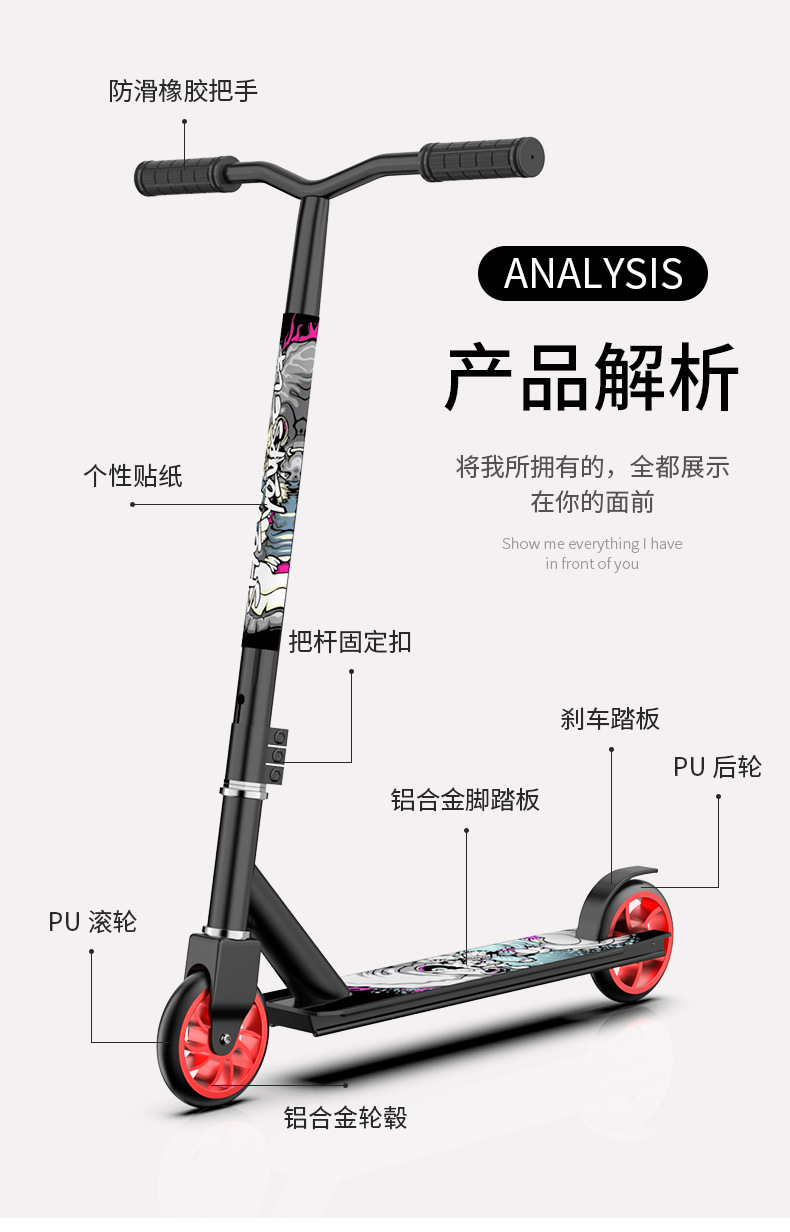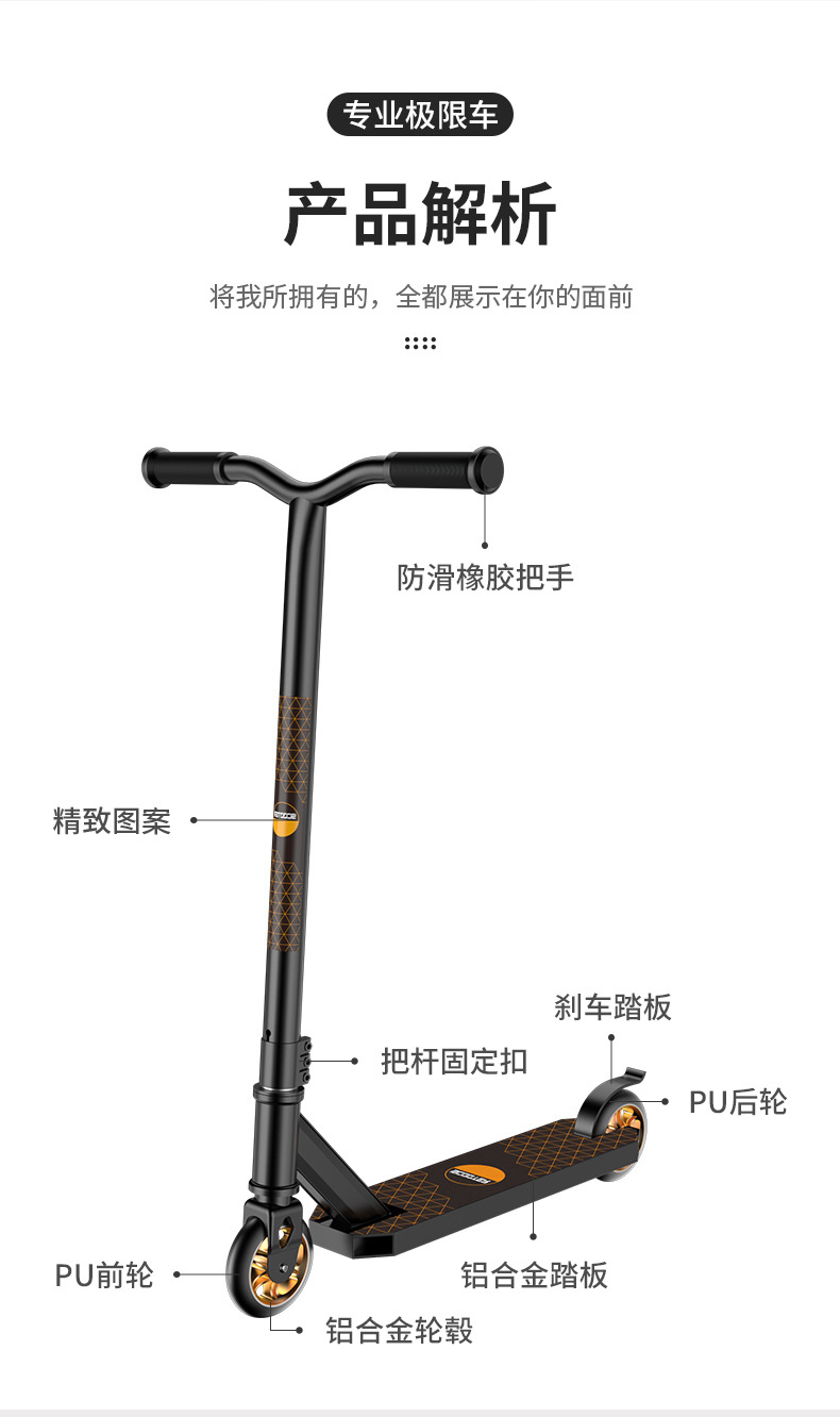 越境新型青少年極限スクーター二輪ブラシ街花式足踏み競技車成人クールスクーター