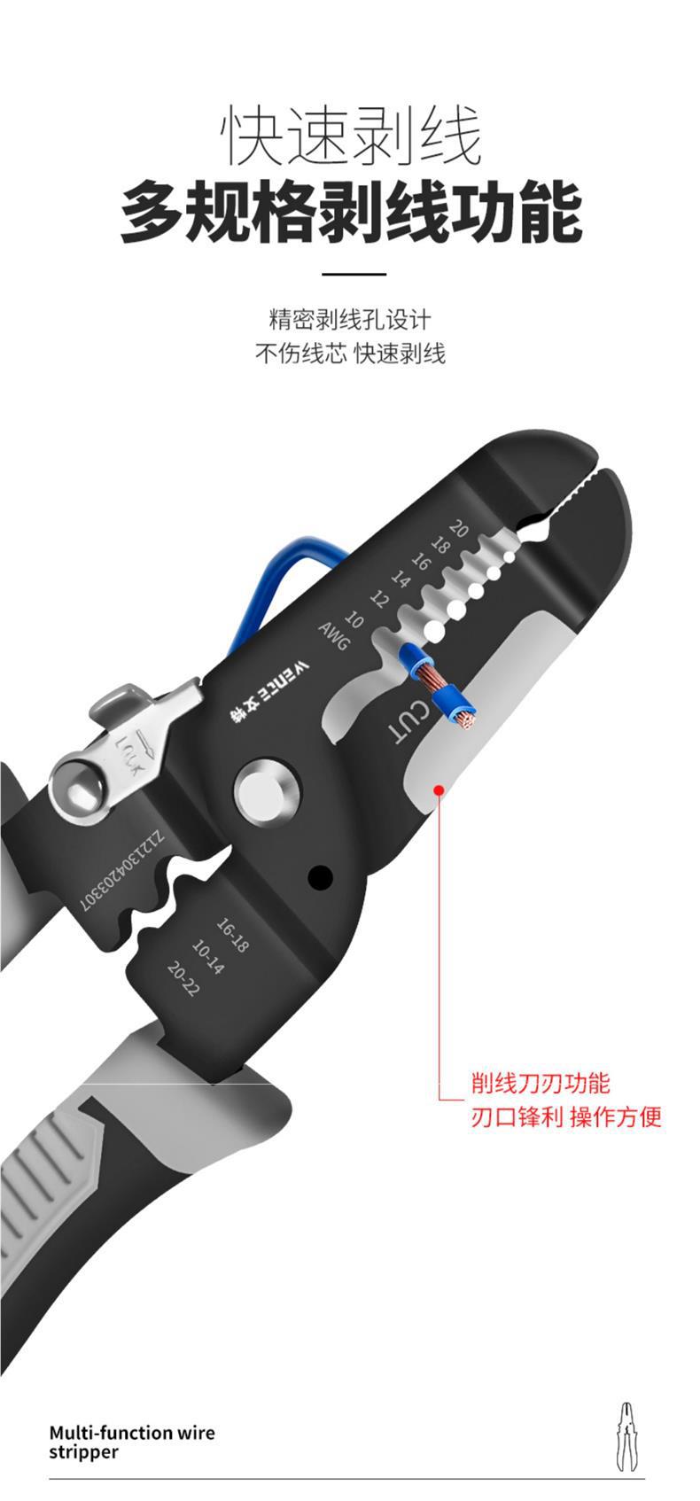 ワイヤーストリッパー工業級多機能九合一電気工専用ケーブル剥皮刀切線皮