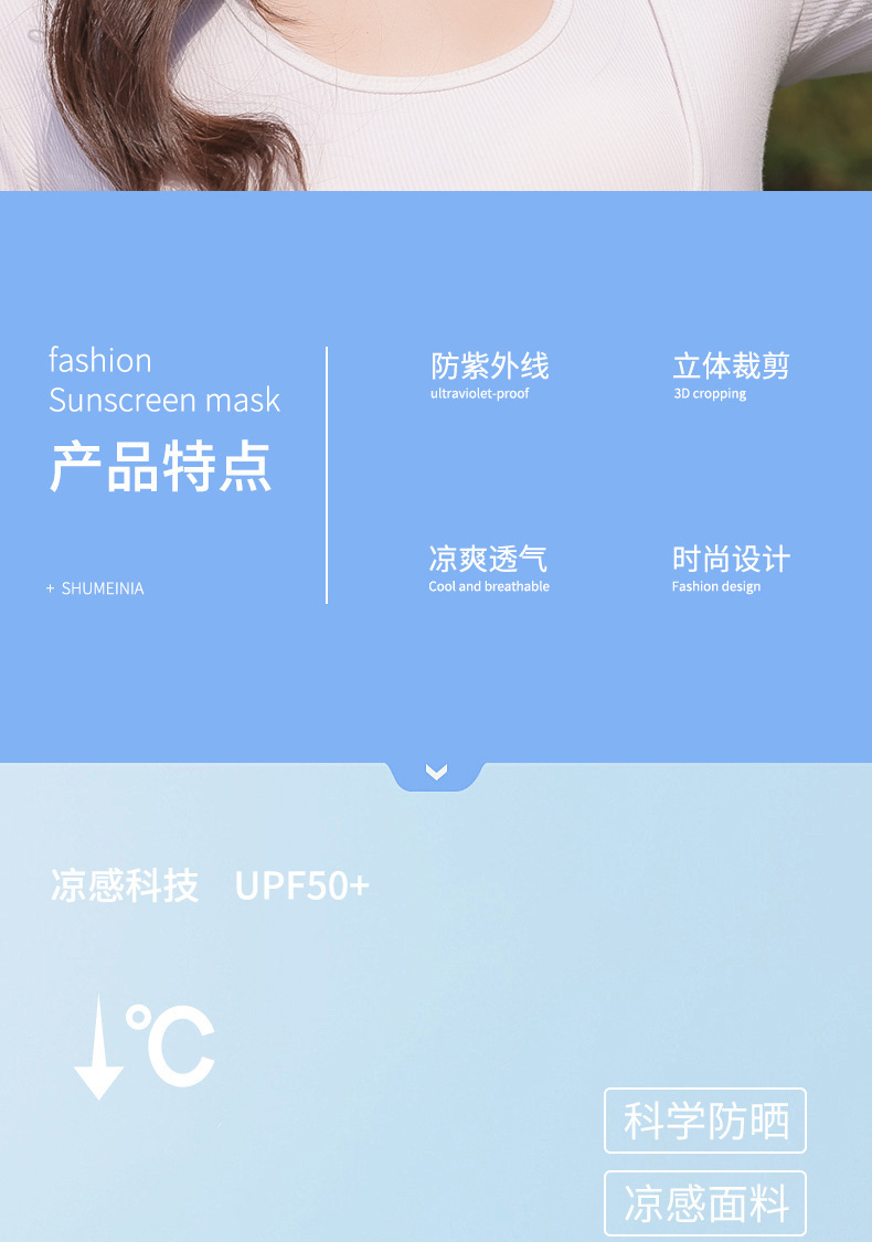 舒美佳日焼け止めマスクUPF50コラーゲン高颜値眼角マスク紫外線防止3d男女