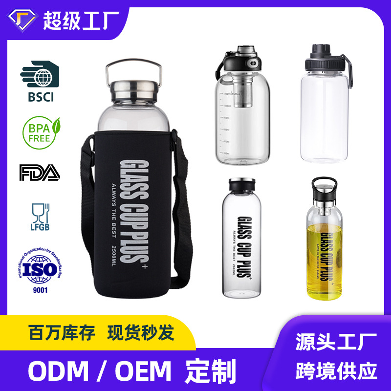 大容量ガラス製スポーツウォーターボトル
