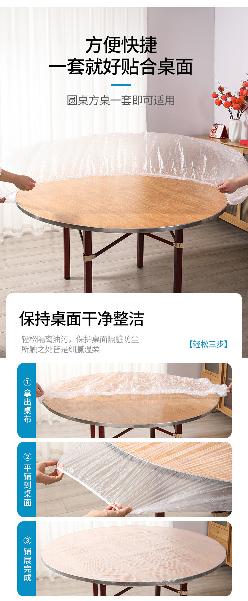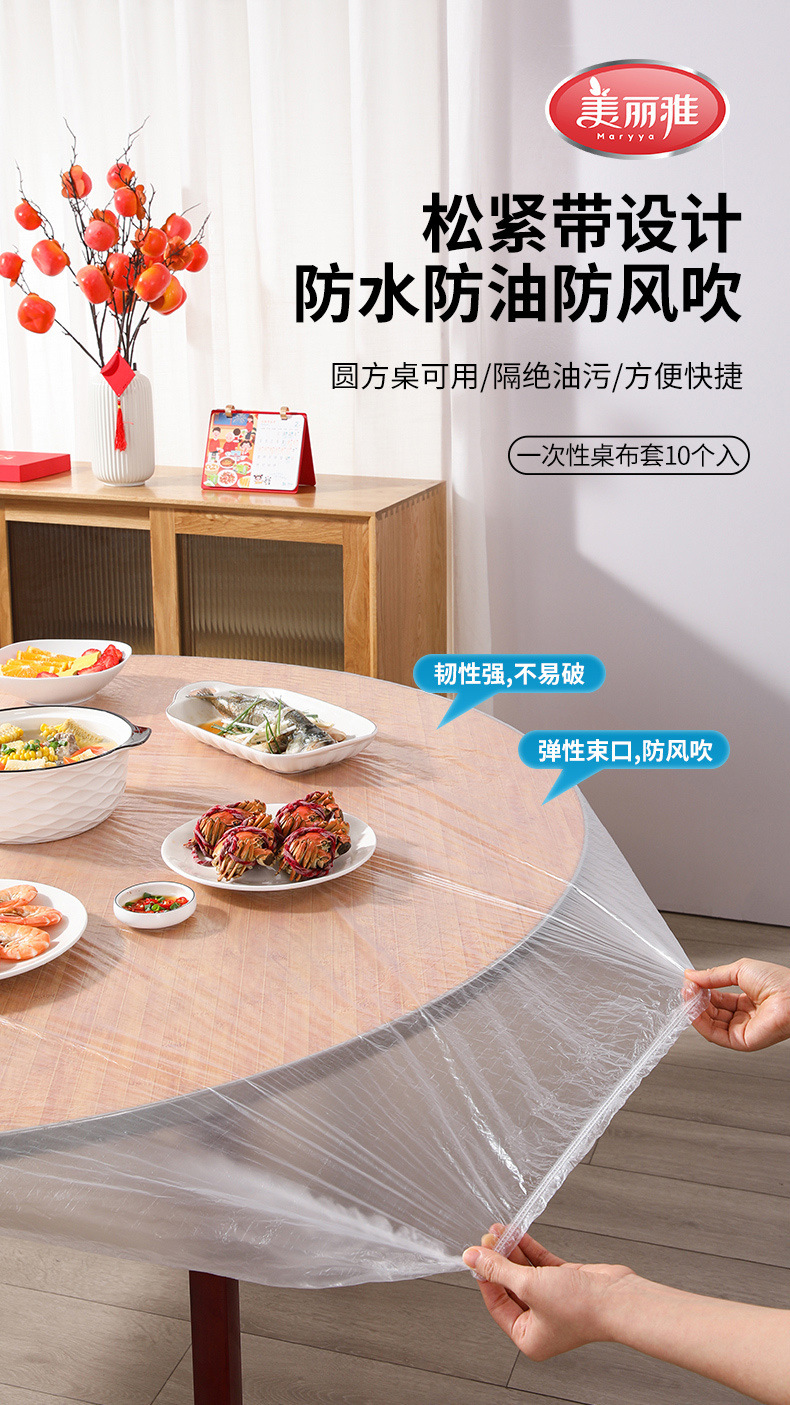 美麗雅無洗テーブルクロスカバー160cm10個入赤色弾性ベルト透明円形家庭用防水防油
