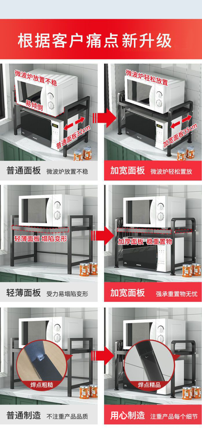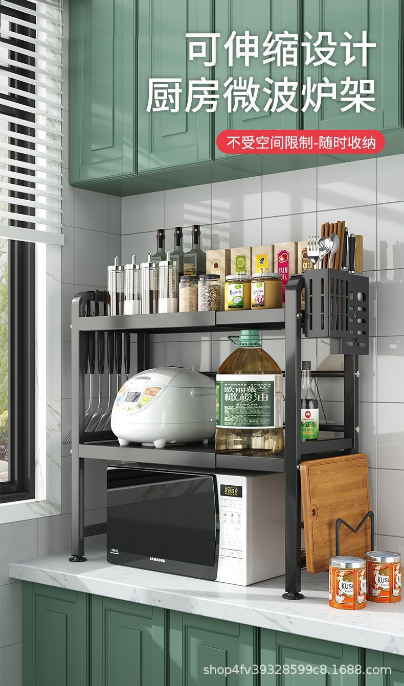厨房置物架微波炉置物架家用台面式可伸缩放置烤箱厨房多功能支架
