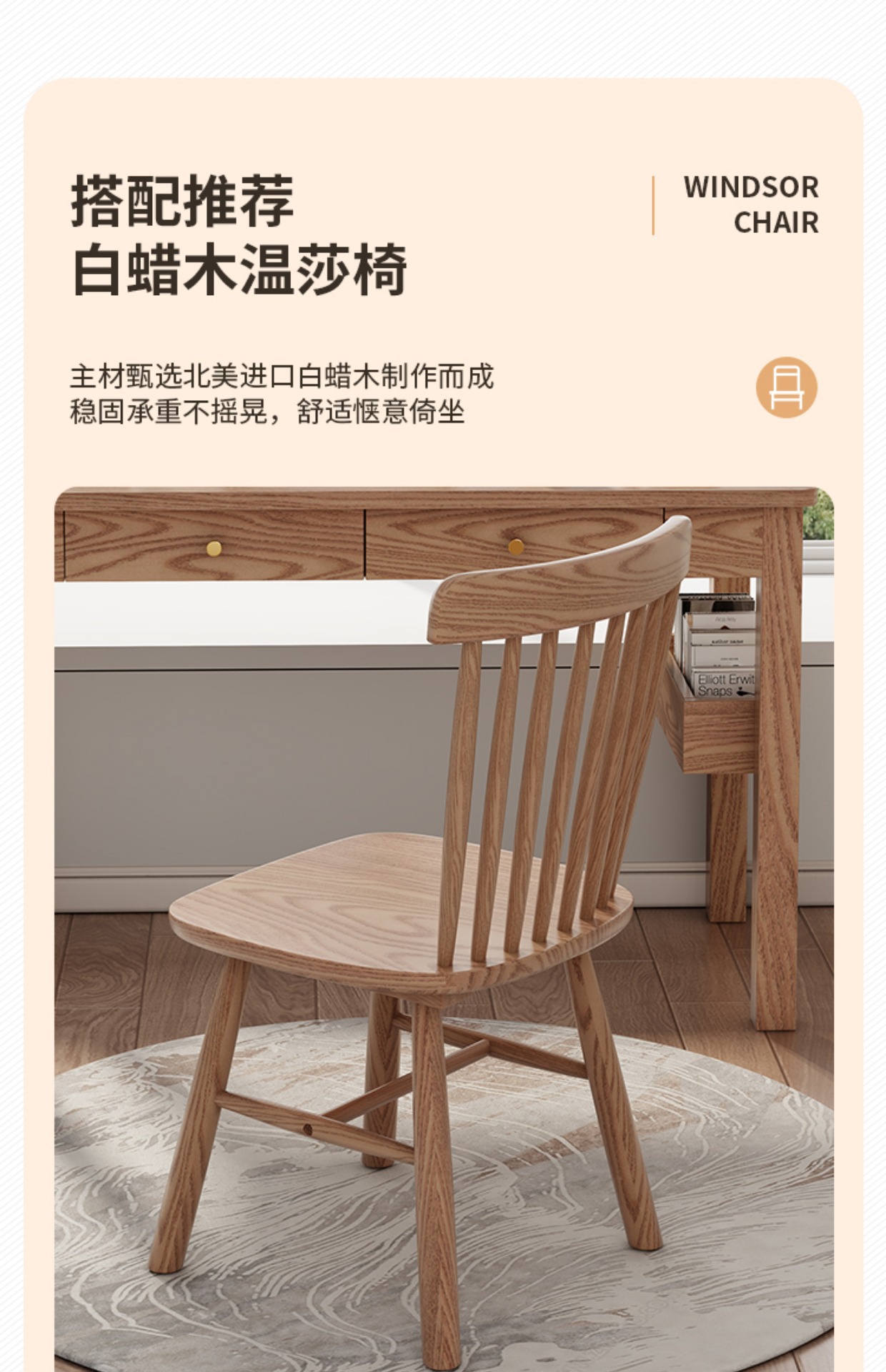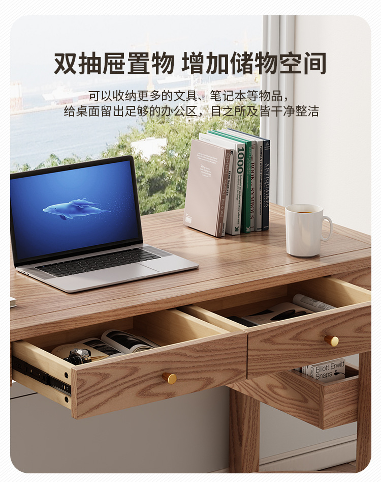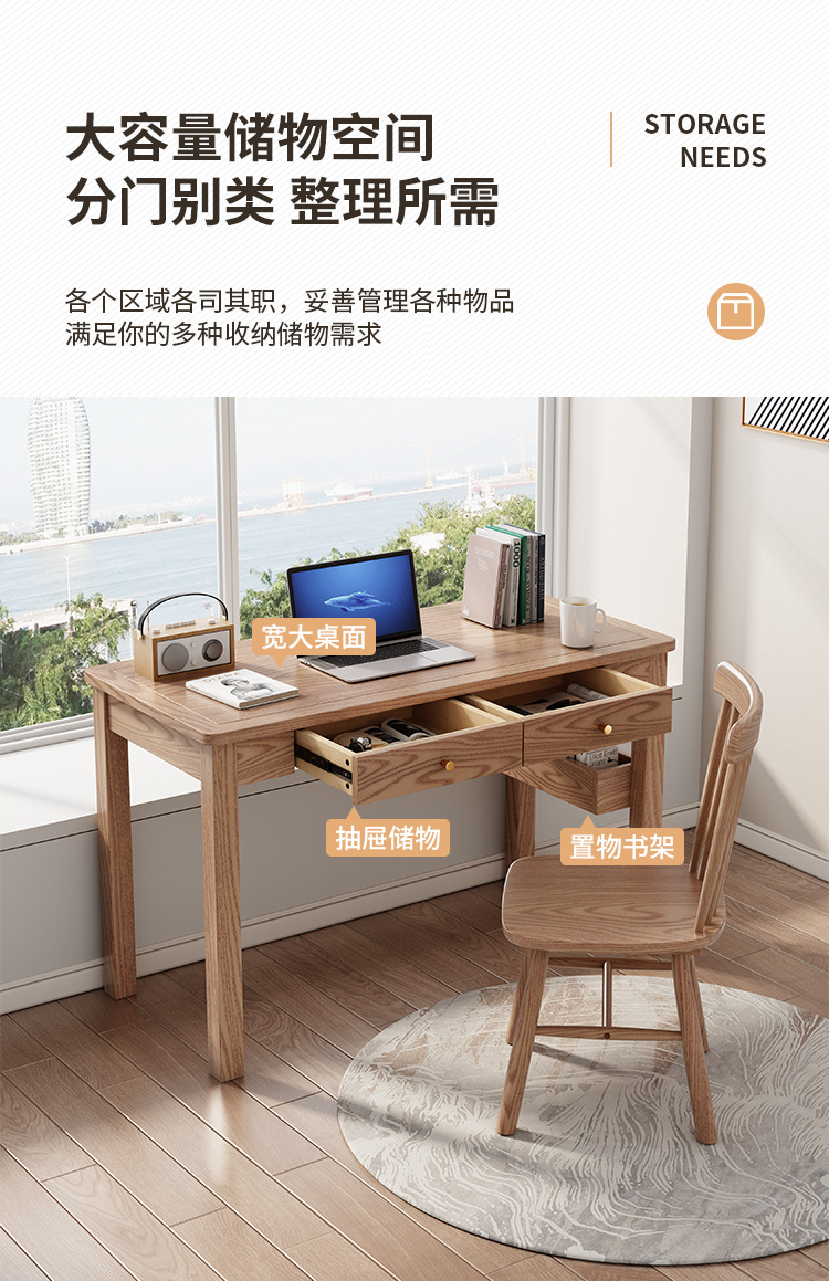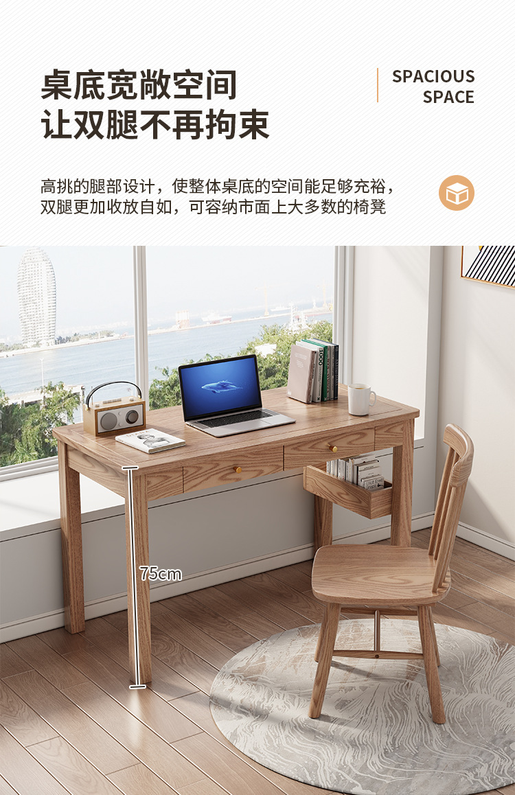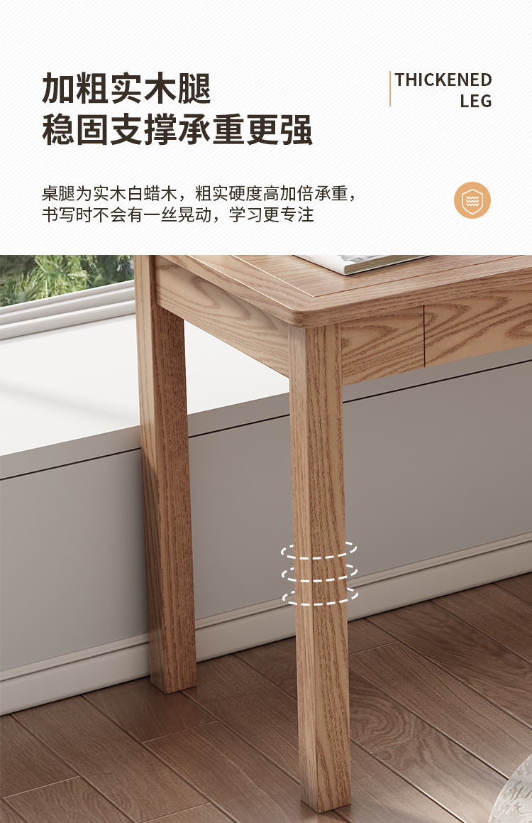 全実木机現代シンプル子供用デスク書斎パソコンデスク寝室小戸型白蝋木デスク