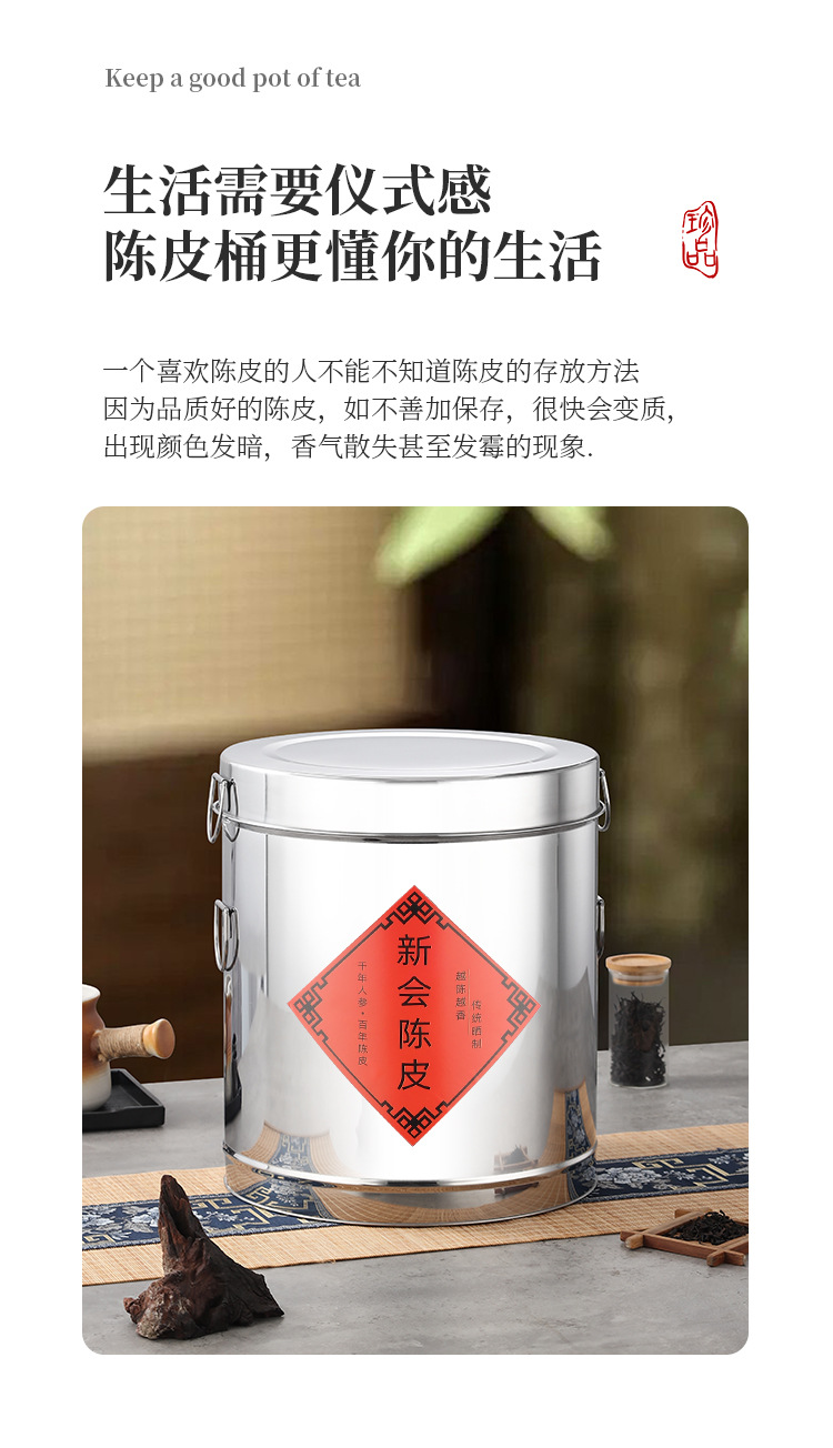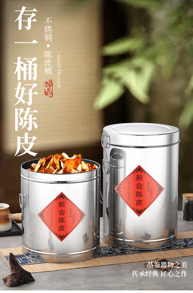 新会陳皮桶ステンレス陳皮桶密封缶茶葉缶茶缶大容量防湿貯蔵タンク
