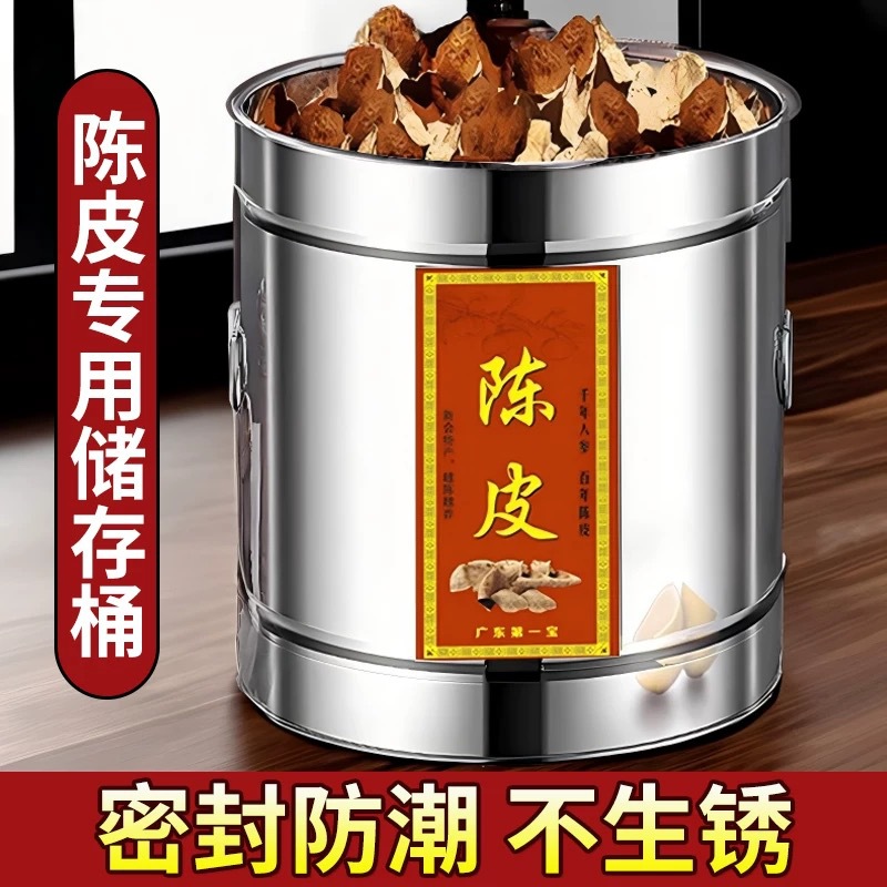 陈皮桶家用防潮防虫不锈钢密封桶装米桶茶叶桶加厚五谷杂粮收纳桶