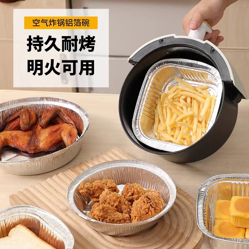 使い捨て家庭用アルミホイルボウル エアフライヤー用アルミホイル皿 正方形 丸型 食品グレード 厚手アルミホイルボックス 卸売