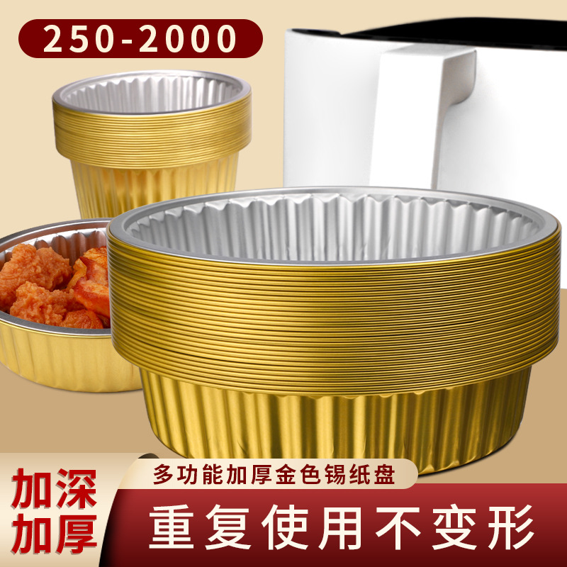 フライヤー専用の金色の厚い硬い錫を入れた紙箱6、7、8インチ食品級オーブンアルミ箔で焼く
