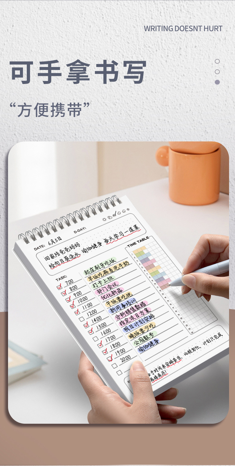 毎日の計画表、自己管理チェックイン記録帳、スケジュールリングノート、切り取り式カレンダー、オフィスデスク飾り卓上カレンダー