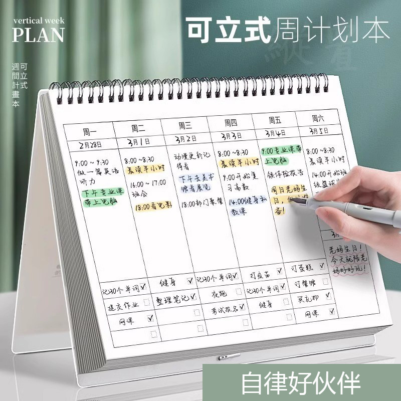打卡周计划本日历记事本可立每周计划表台历学生每日计划表高颜值