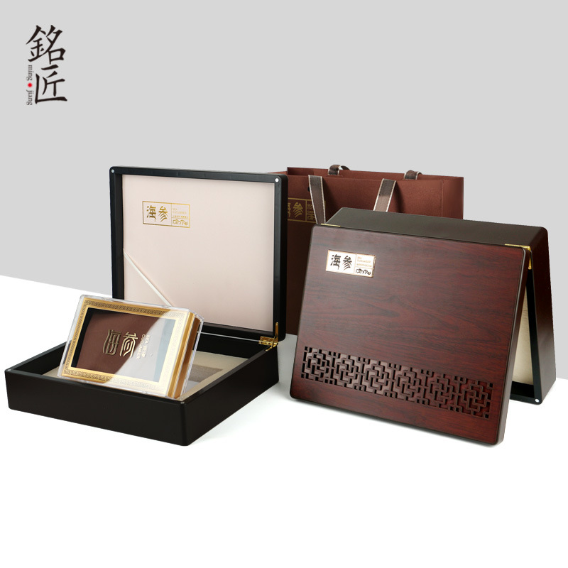 ナマコギフト包装箱空箱 0.5kg 半斤ハイエンド木目窓飾り乾燥ナマコハンドギフト包装箱