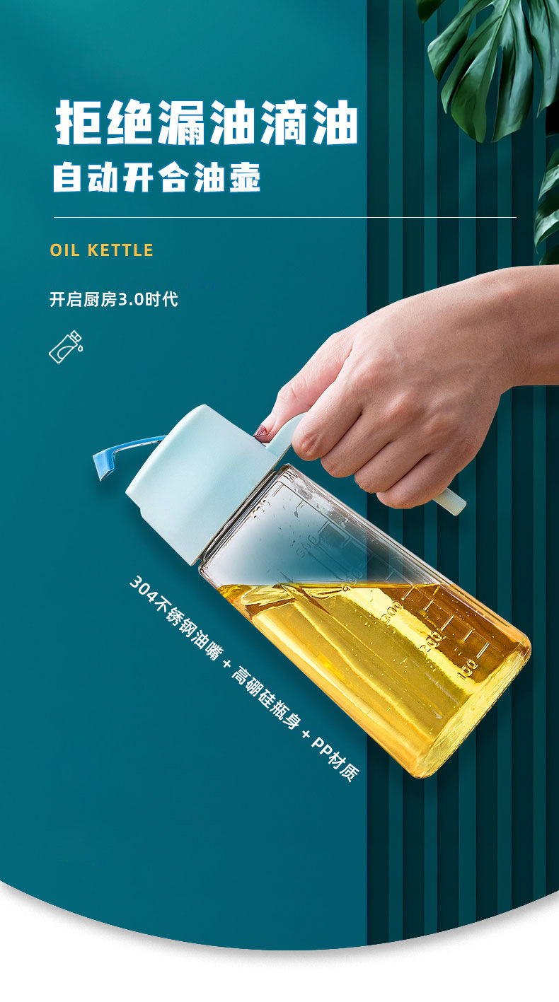 自動開合ガラス鷹口油壺キッチンプレゼント調味醤油酢家庭用油漏れ防止マーク