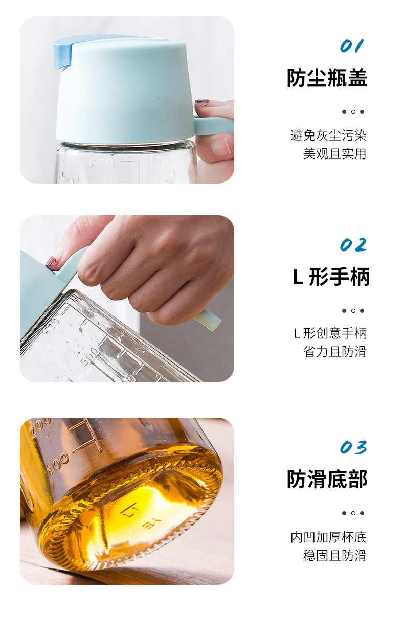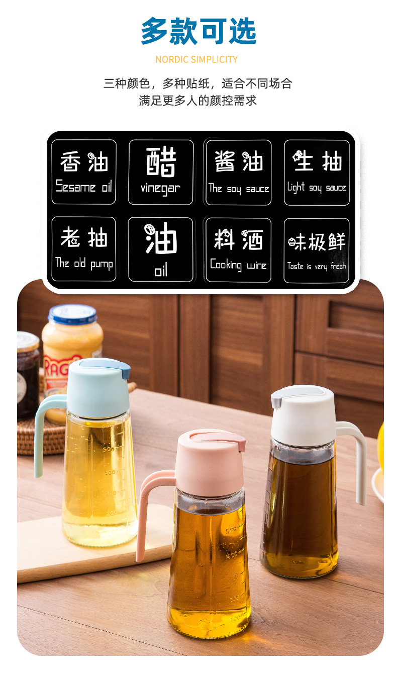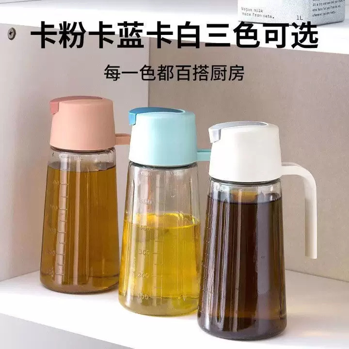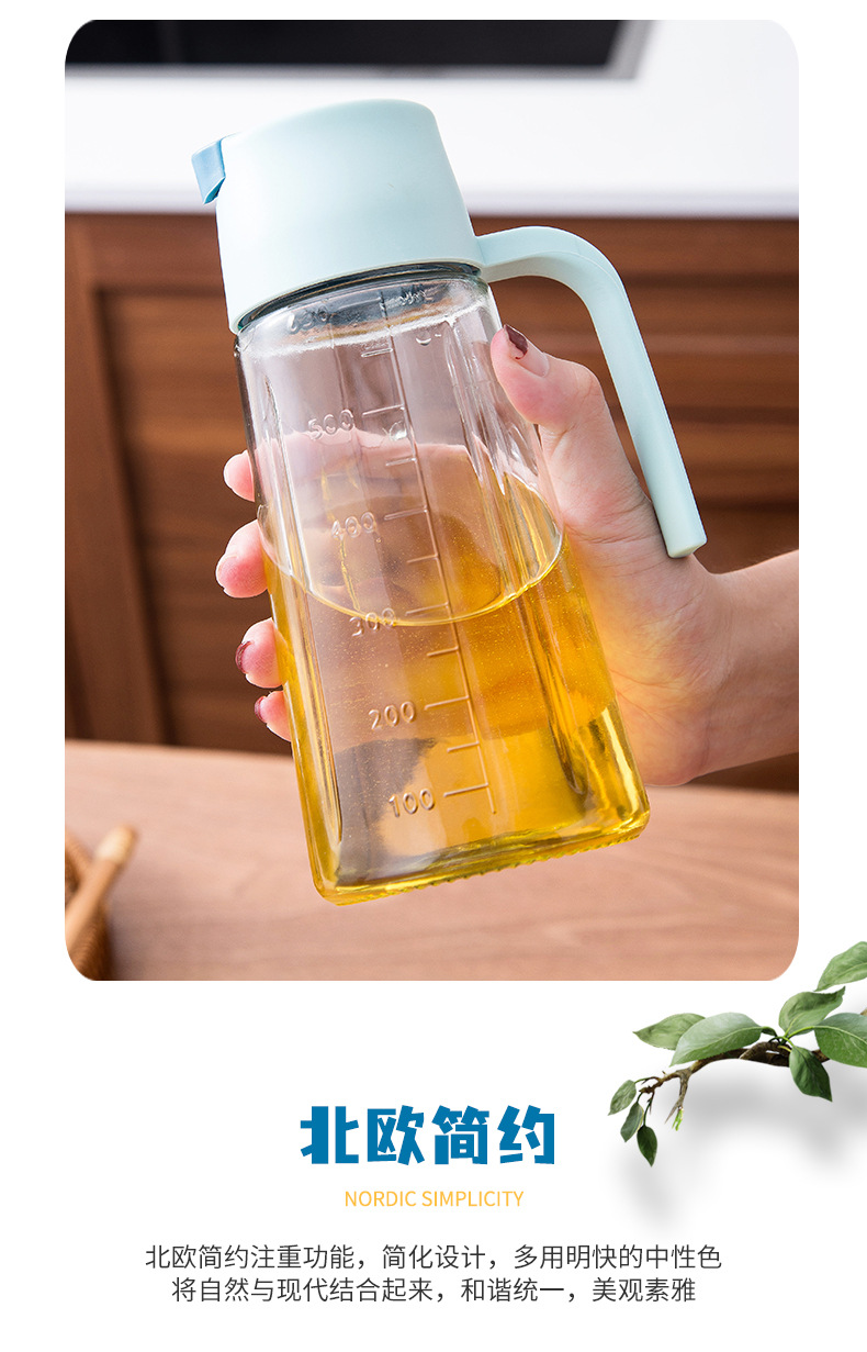 油壶不挂油家用厨房收纳带把玻璃油壶自动开合油壶油瓶调味醋瓶