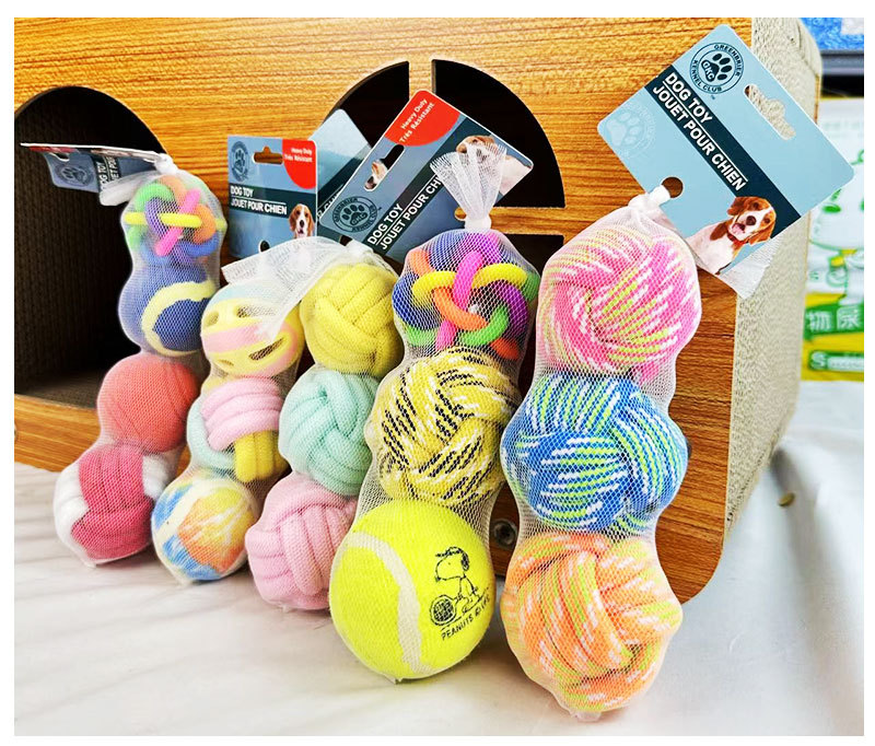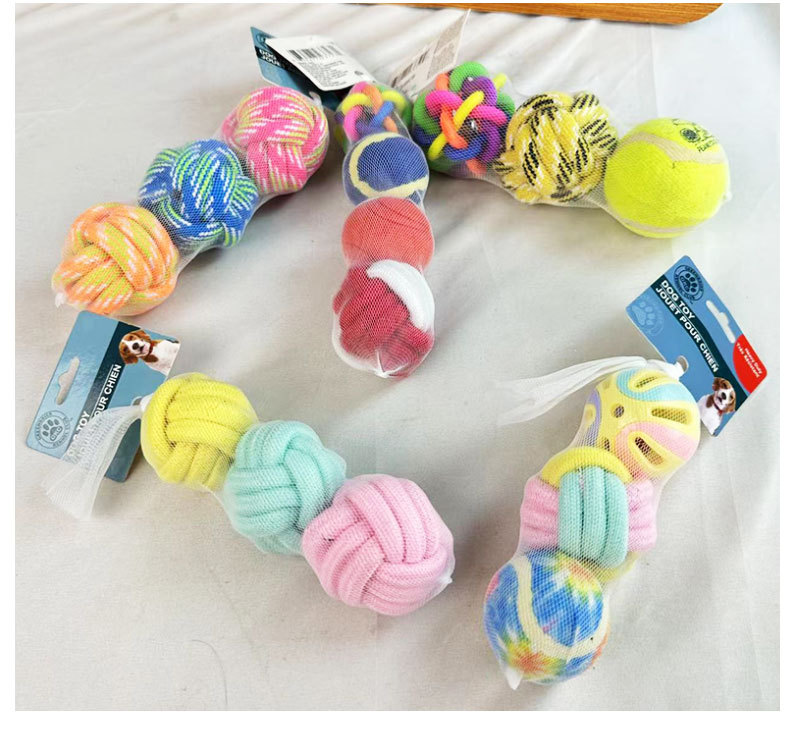 カラー 弾力ボール鈴ボール綿ロープボール (3個入り),綿ロープボール (3個入),マカロン色綿ロープボール (3個入),テニスの綿の縄は七色の鈴のボールを求めます (3個入り),綿の縄はテニスの弾力のボールを求めます。