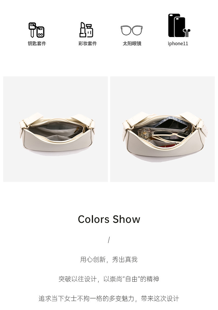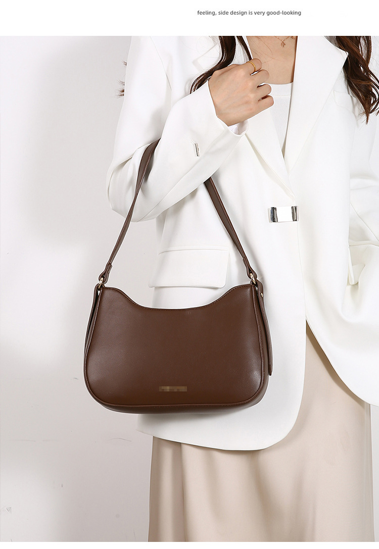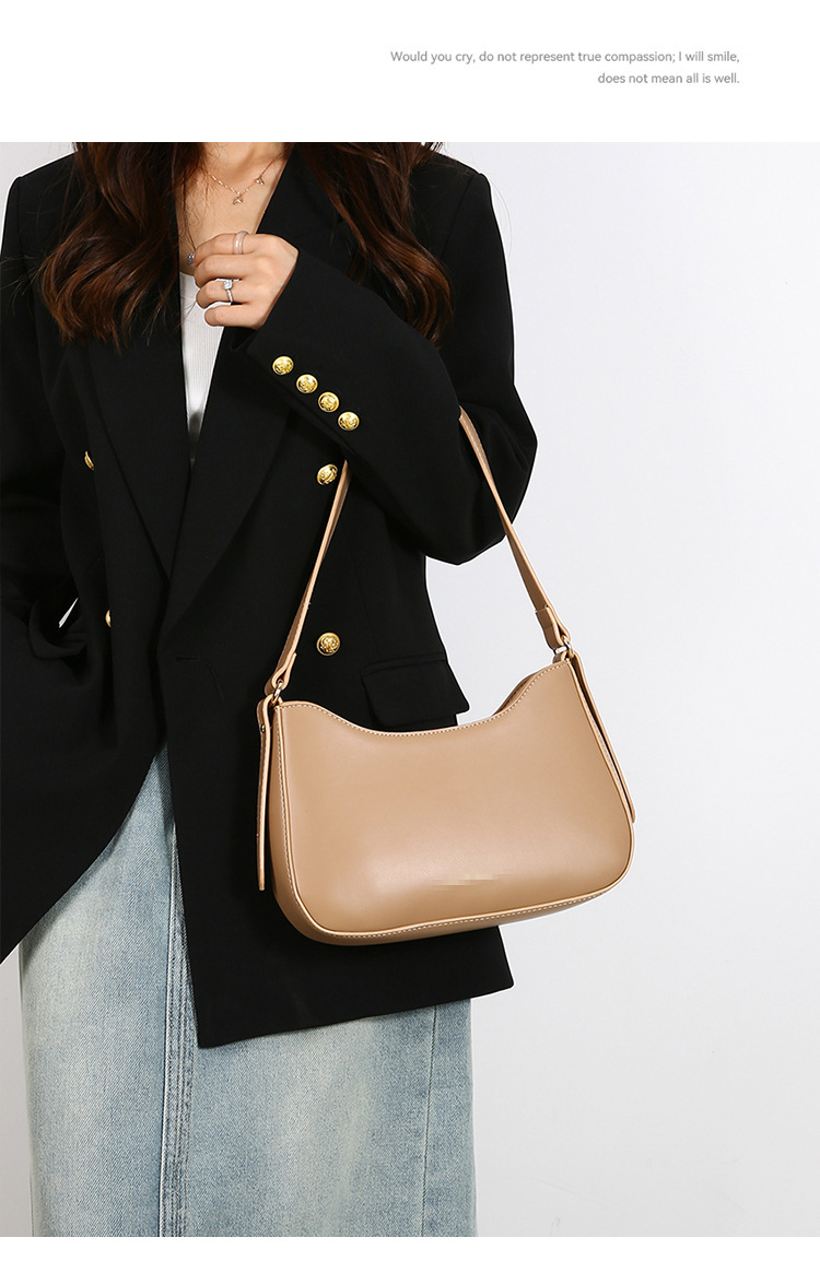 韓国系の高級な質感の包みの女性の2024秋の新商品のファッションの百合のシンプルな肩の脇の下の包みの新月の包みの女性