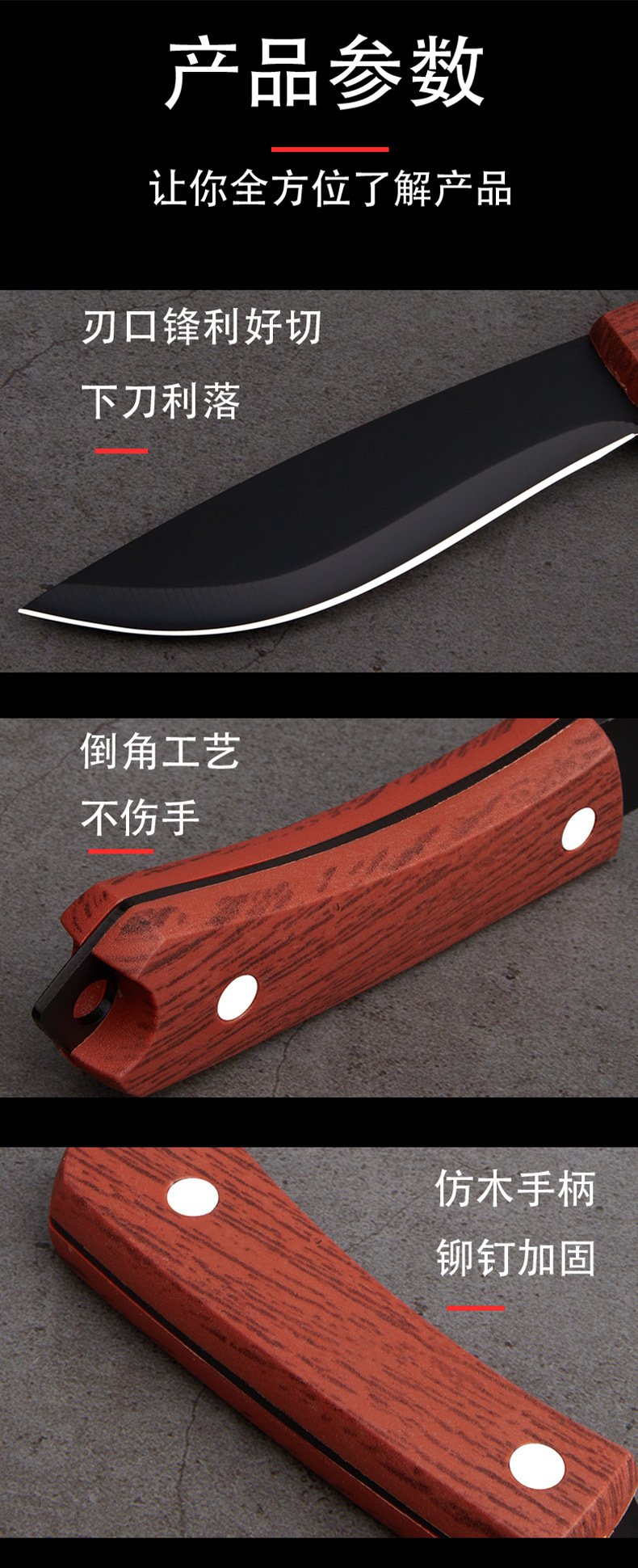 手鍛造一体型無垢材切断多目的ナイフ、アウトドアキャンプサバイバル、ポータブル、木を切って道を開く、多機能