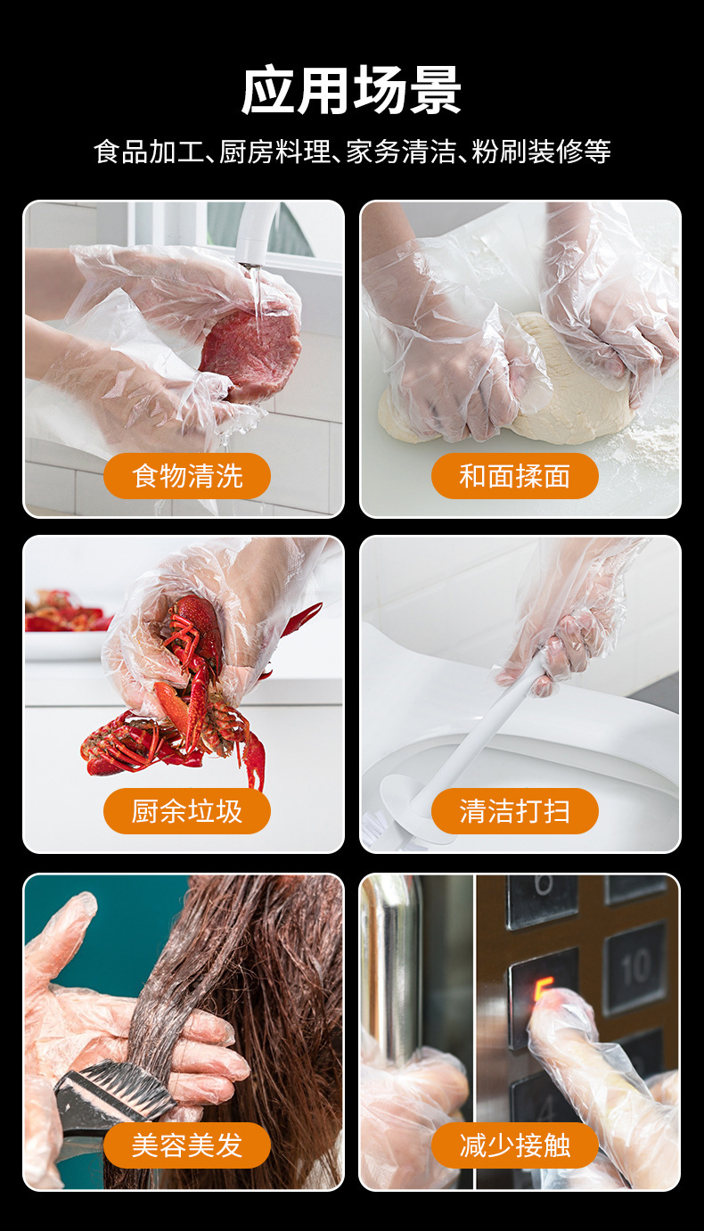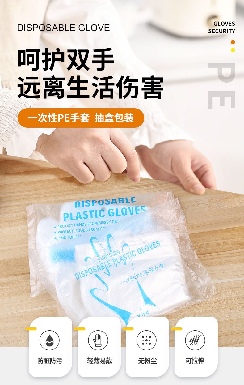一次性手套抽取式加厚塑料透明薄膜食品级家用厨房餐饮美发手膜