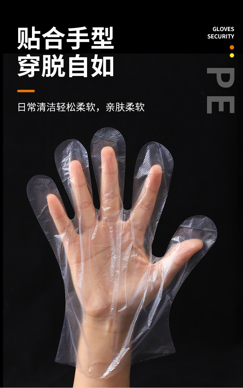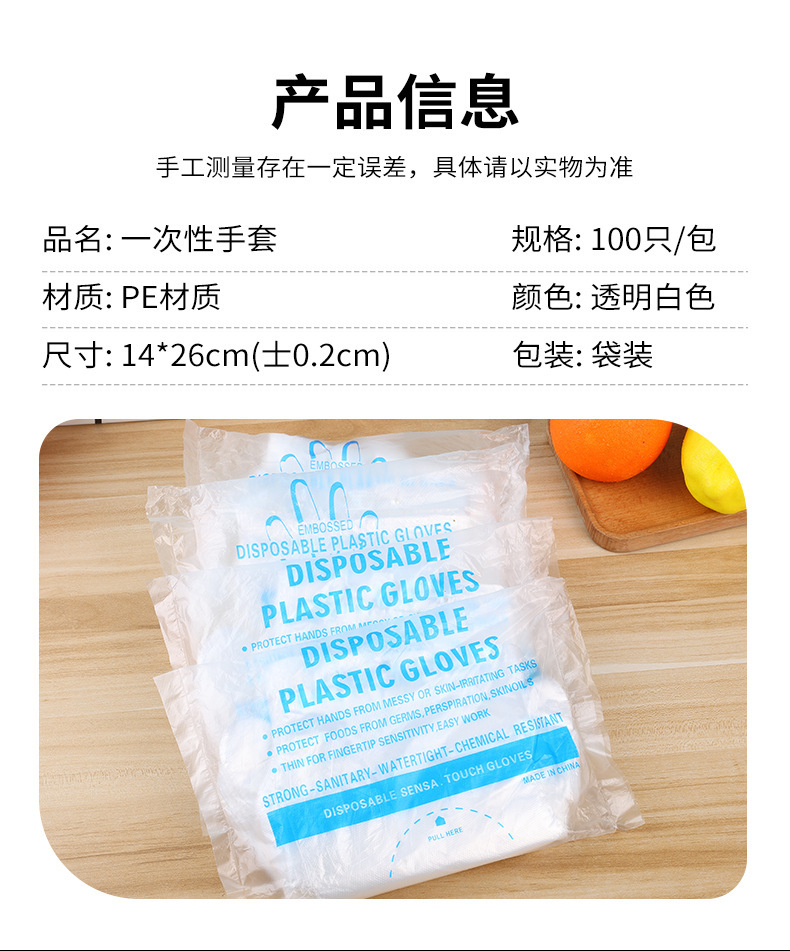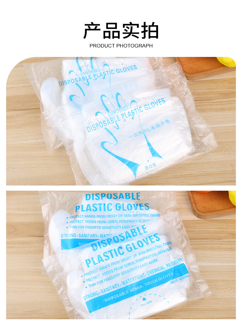 使い捨て手袋卸売り100個入り透明フィルム手袋使い捨てpe手袋食用スポット