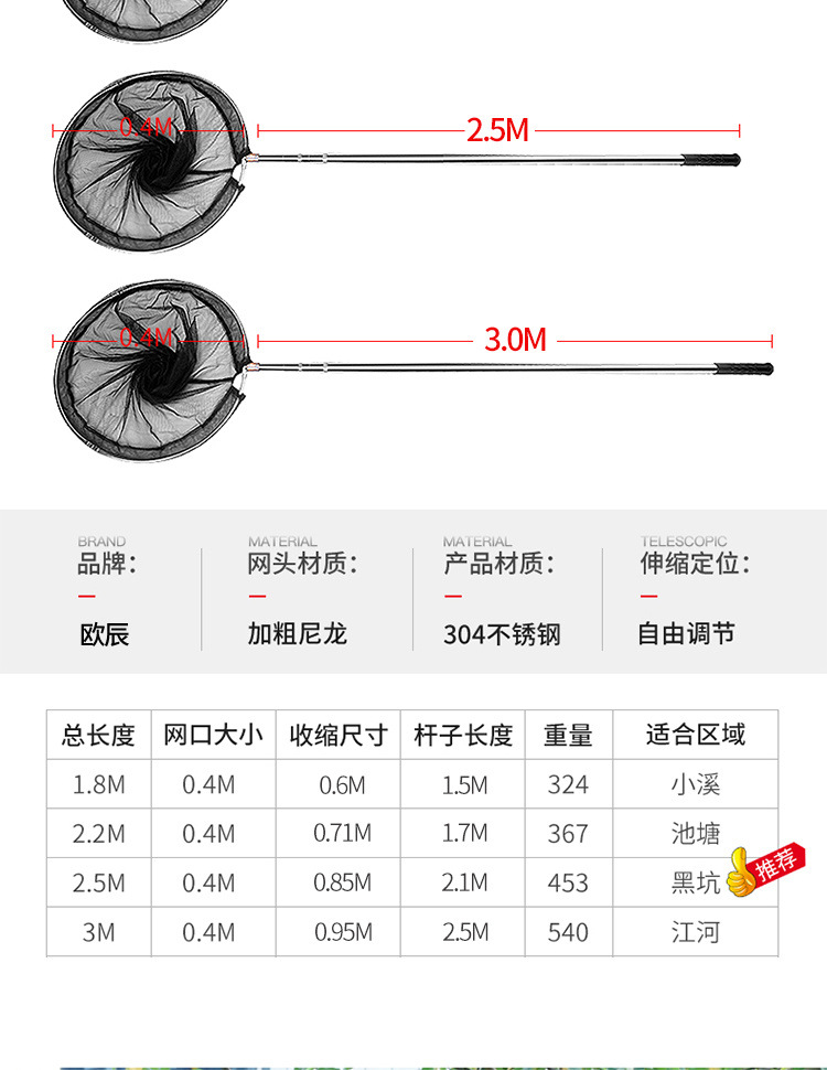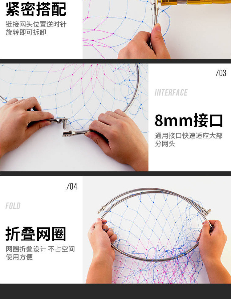 パッチワーク賠償金2.1メートル3メートル4メートルステンレス製パッチワーク折り畳み位置決めパッチワーク釣りパッチワーク竿すくい網ポケット