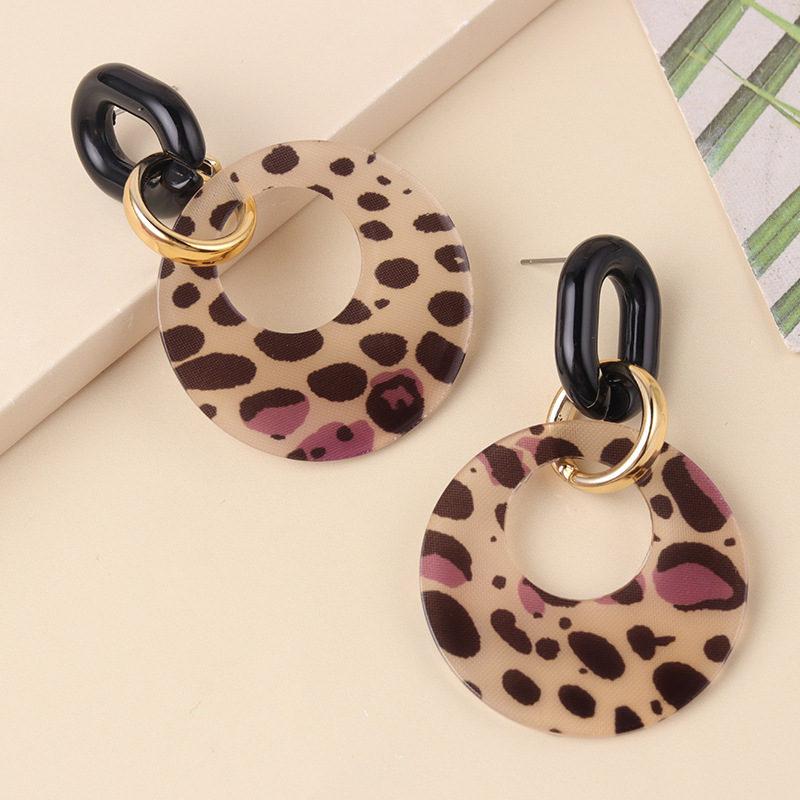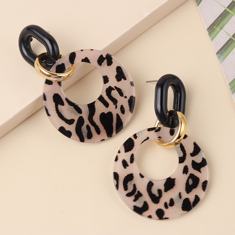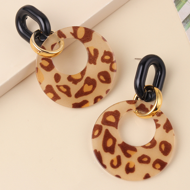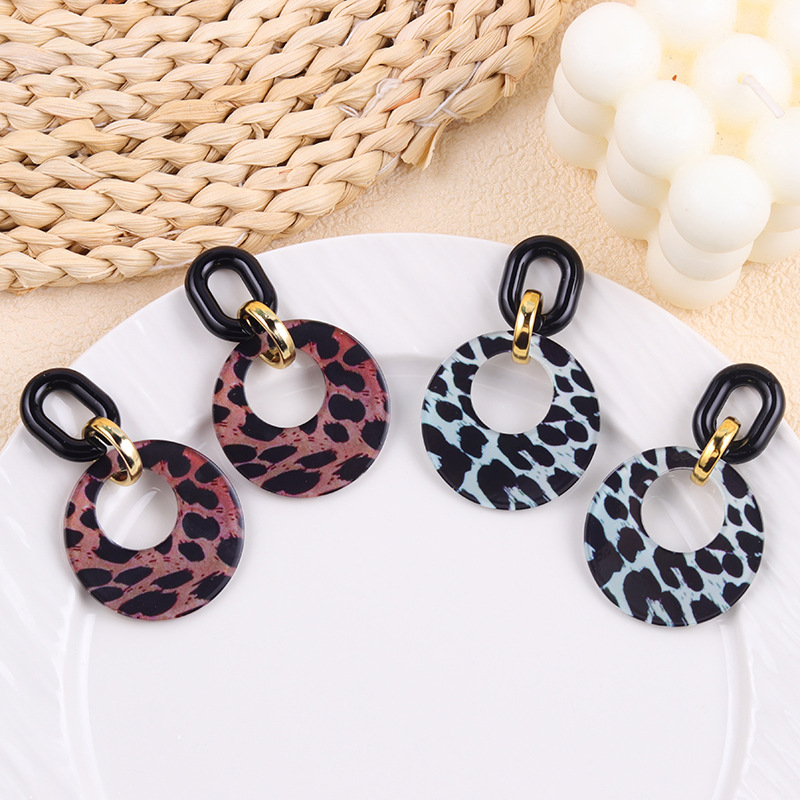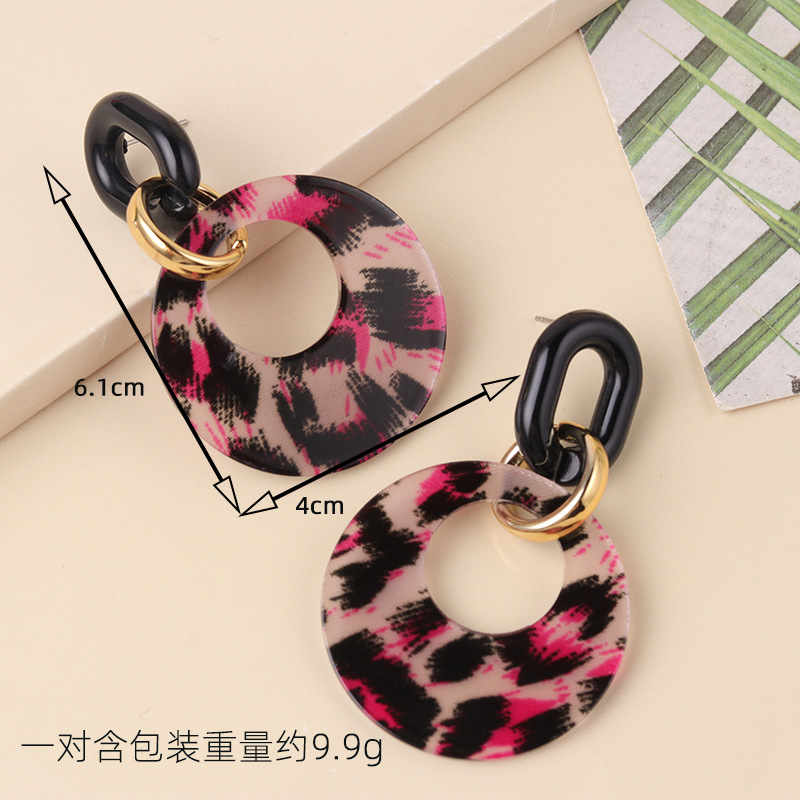 欧美跨境个性豹纹耳钉圆形镂空几何亚克力耳环高级感耳坠耳饰品女