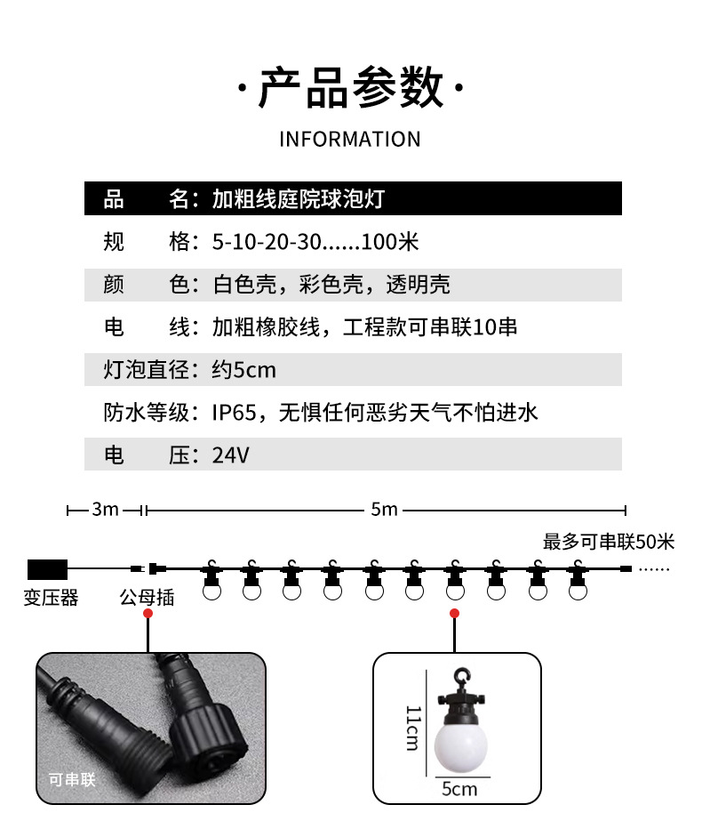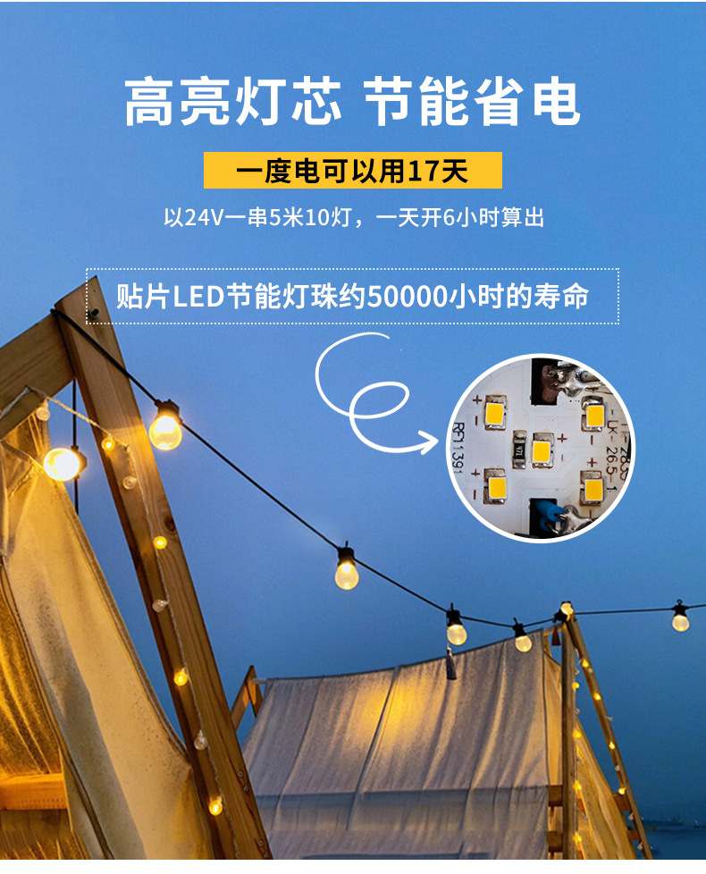 LED 電球ライトストリング屋外防水 g50 ボールライトストリングソーラーランタンキャンプテント雰囲気キャノピーライトストリング