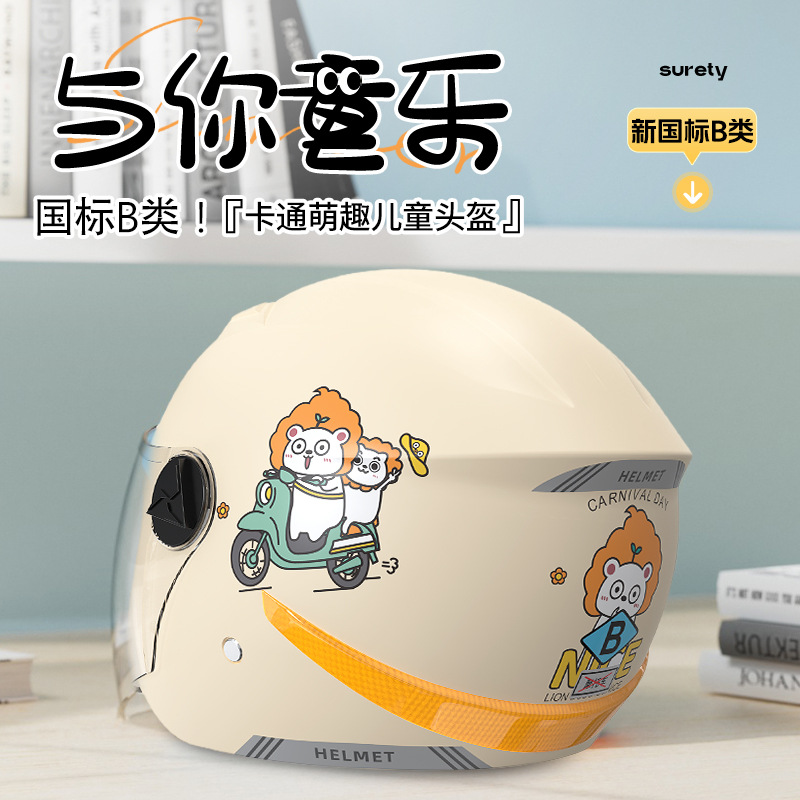 新国標児童ヘルメット電気自動車かわいいアニメ四季通用3C認証バイク男子安全ヘルメット