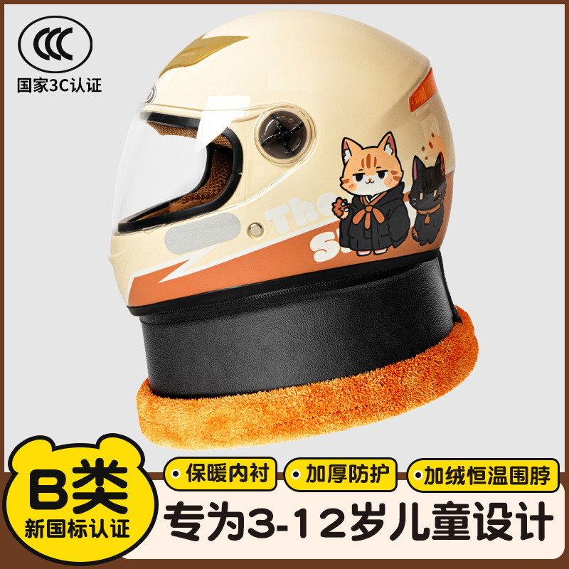 AD儿童头盔3C认证电动摩托车四季女孩男孩小孩宝宝全盔冬季安全帽