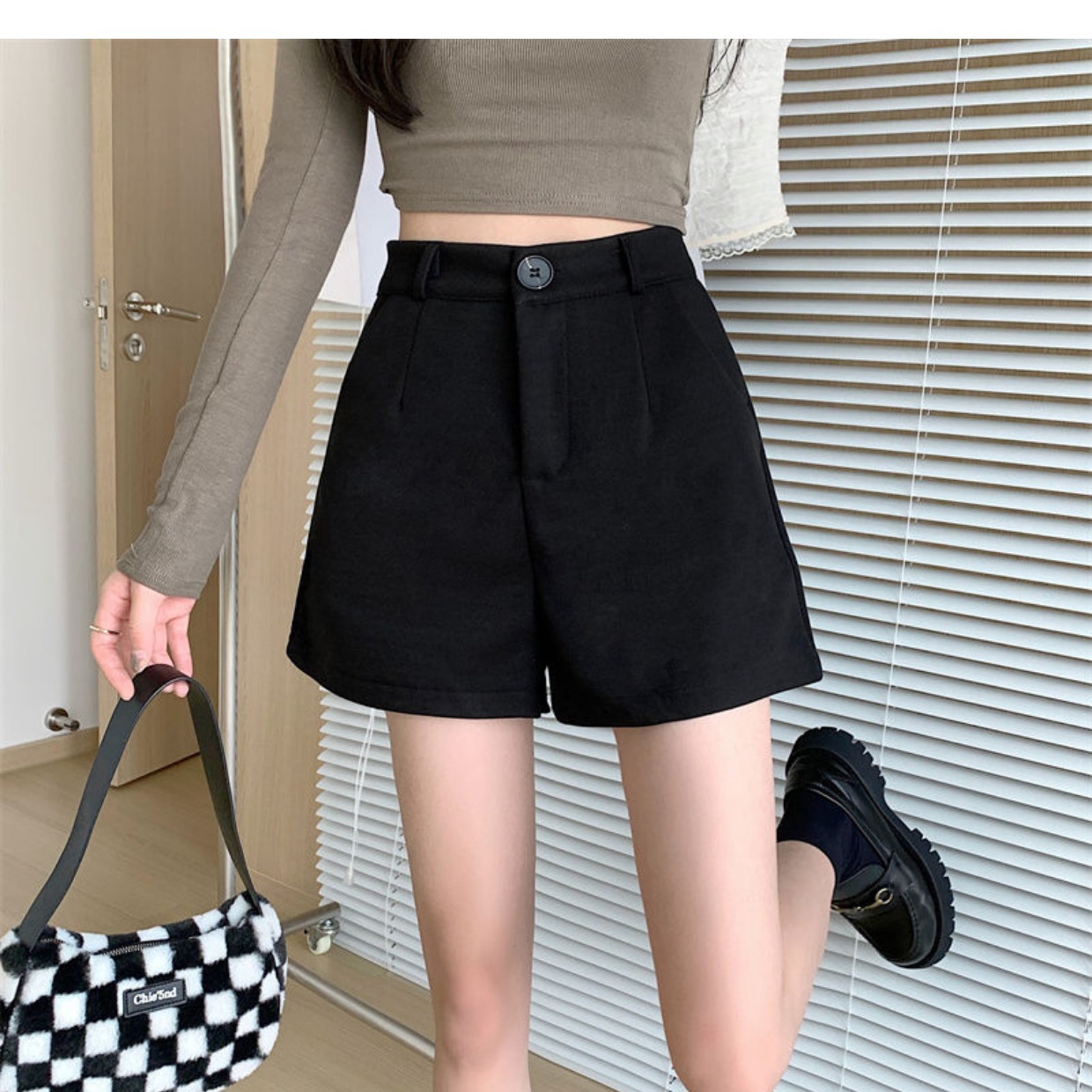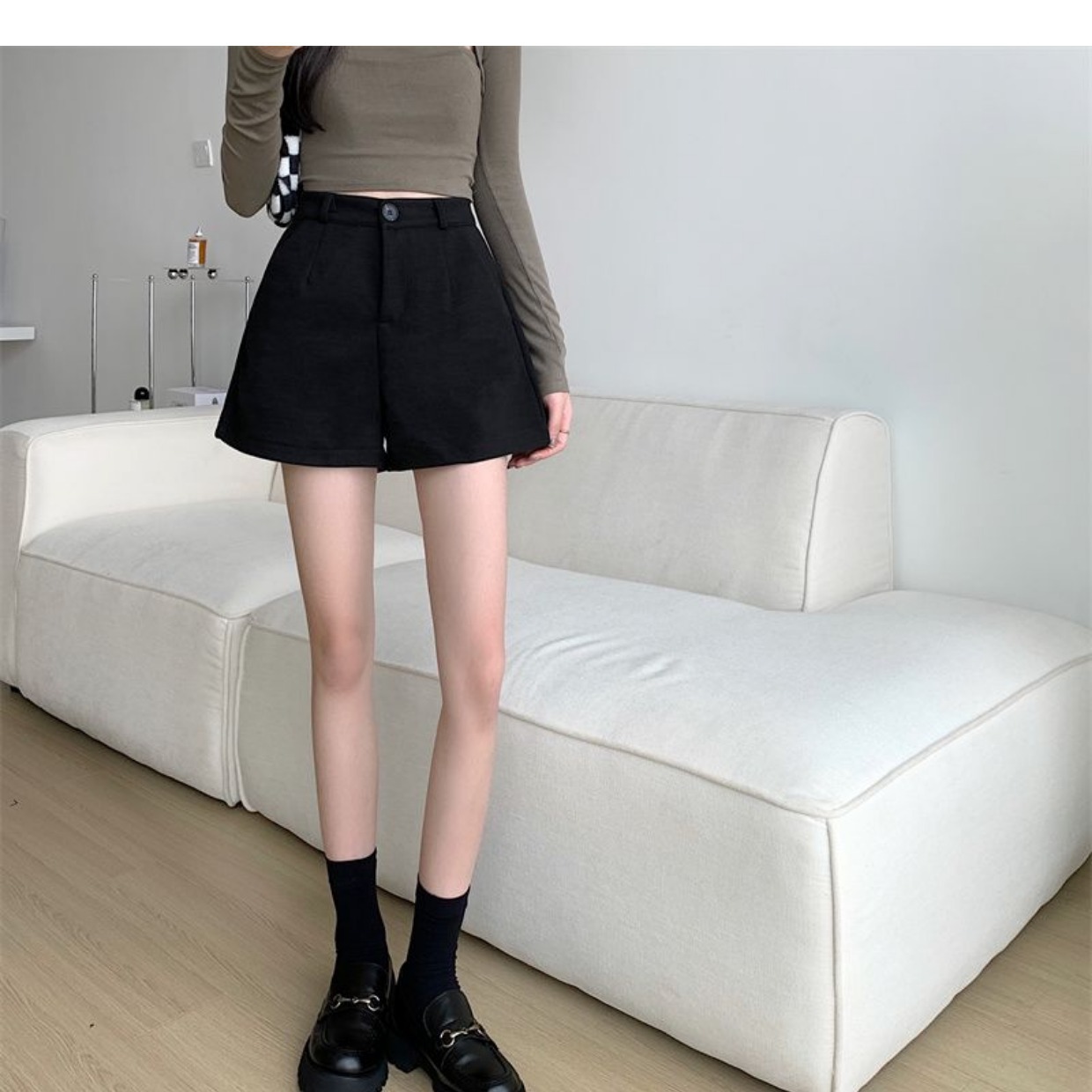 黒い半ズボンの女性の秋冬の新型の2024高腰のa字の小さい背のガードルのスーツの熱いズボンの外はベルベットの靴のズボンを着ます。