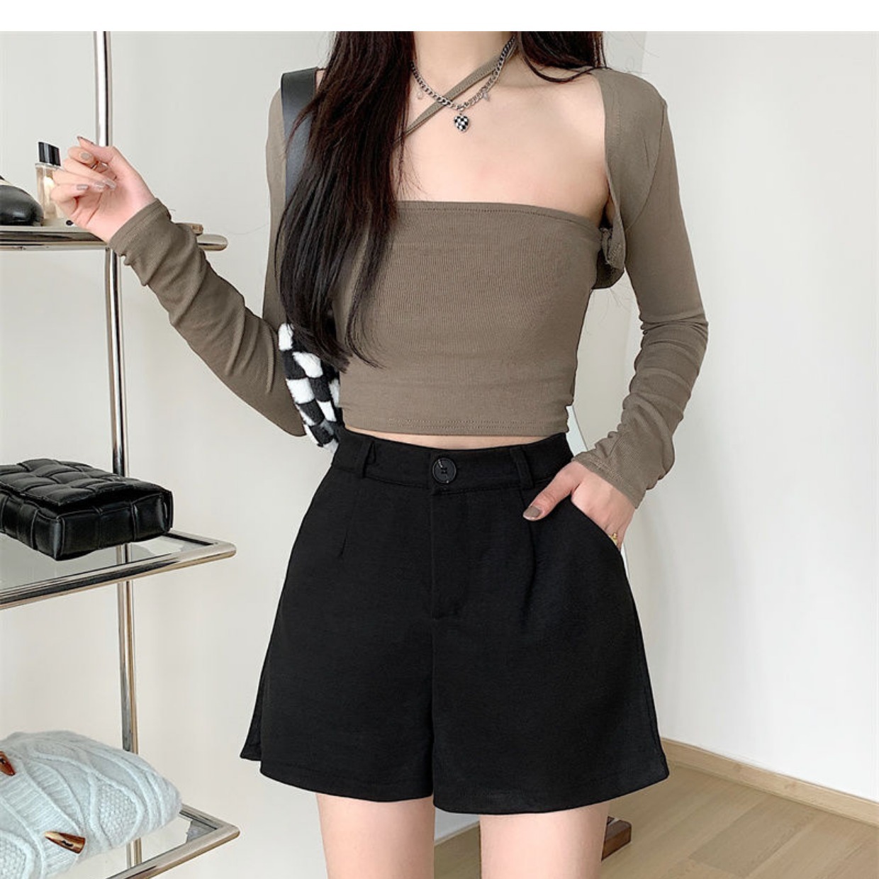 スーツグレースカートレディース2025年夏新作ヒップカバーショートスカートブラックハイウエストショートスカート