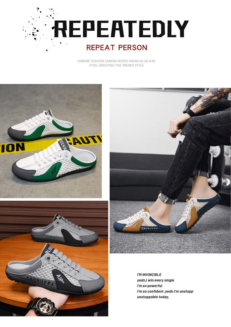 包頭スリッパメンズ夏アウターメッシュ通気性スリッポンハーフドラッグバックレスビーチサンダルカジュアルシューズ紳士靴