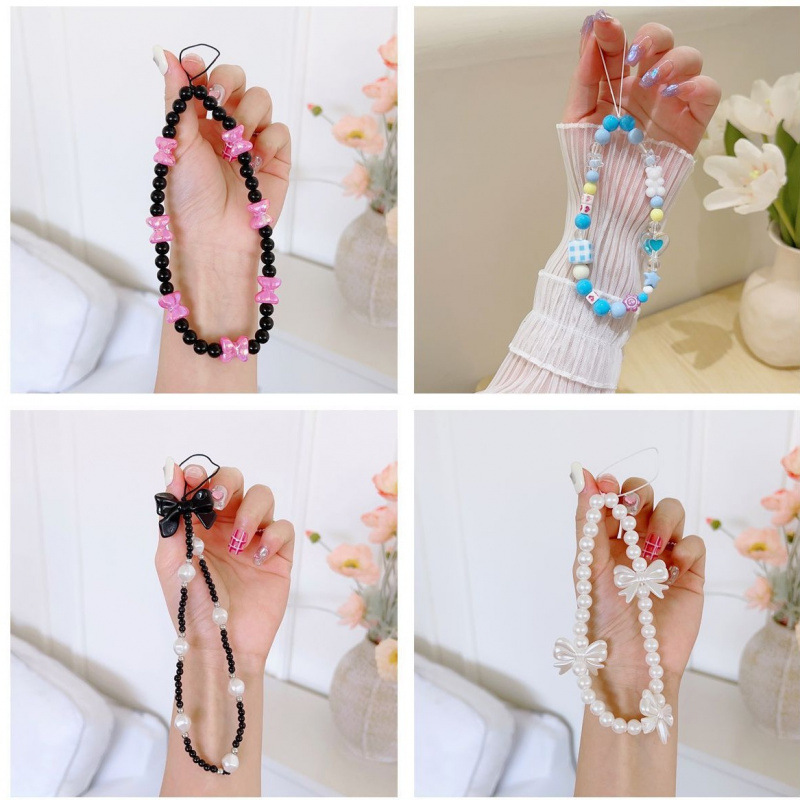新しい携帯電話のストラップの短い女性のアイデアの蝶結びの真珠のチェーンの携帯電話の携帯電話の鎖の部品のDIYカバンの装飾